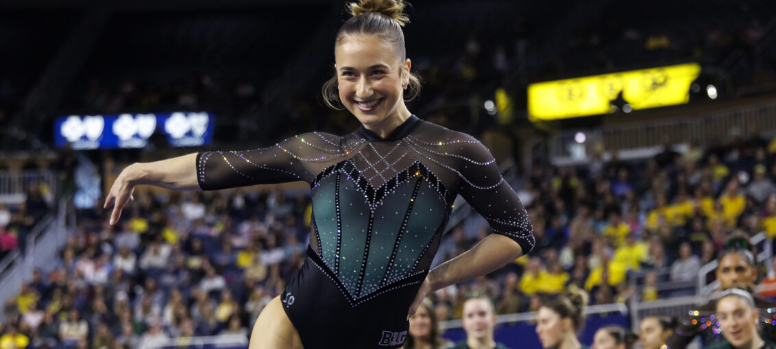 Michigan Secures First Big Ten Win Over Iowa at Crisler Center Big Ten Big Ten Gymnastics Gymnastics Iowa Hawkeyes Michigan Wolverines by Tony Vasquez - January 26, 20260 Ann Arbor, Mich. — Under the bright lights of the Crisler Center, No. 10 Michigan delivered a composed performance Friday night, defeating No. 24 Iowa 196.775–195.600. It marked the Wolverines’ first Big Ten victory of the season. Michigan set the tone immediately on vault, riding clean landings and confident amplitude to