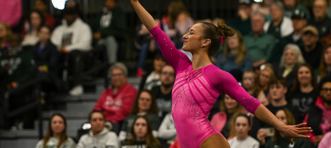 No. 11 Spartans Shine in Pink, Edge No. 21 Buckeyes at Jenison Fieldhouse Big Ten Gymnastics Gymnastics by Chris Shaw - February 26, 20260 East Lansing, MI – In a high-stakes Big Ten clash fueled by a sea of pink, the No. 11 Michigan State women’s gymnastics team secured a hard-fought 197.300-196.850 victory over No. 21 Ohio State this past Saturday. The annual Breast Cancer Awareness meet at Jenison Fieldhouse delivered on its promise