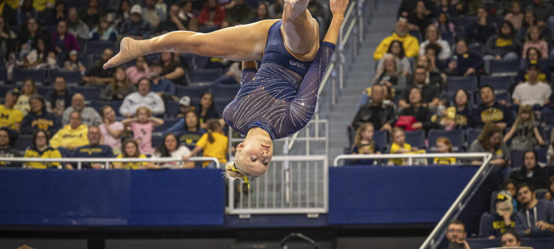 Wolverines Shine at Crisler Center Big Ten Big Ten Gymnastics Gymnastics Michigan Wolverines Rutgers Scarlet Knights by Tony Vasquez - February 25, 20260 Inside the confines of Crisler Center, the Michigan Wolverines women's gymnastics delivered another composed Big Ten performance, defeating the Rutgers Scarlet Knights women's gymnastics 197.100–195.675. Michigan set the tone immediately on vault, posting a 49.325 behind a meet-high 9.925 from Reyna Guggino. Ava Jordan added a 9.900, while Kayli Boozer and Jahzara Ranger each contributed