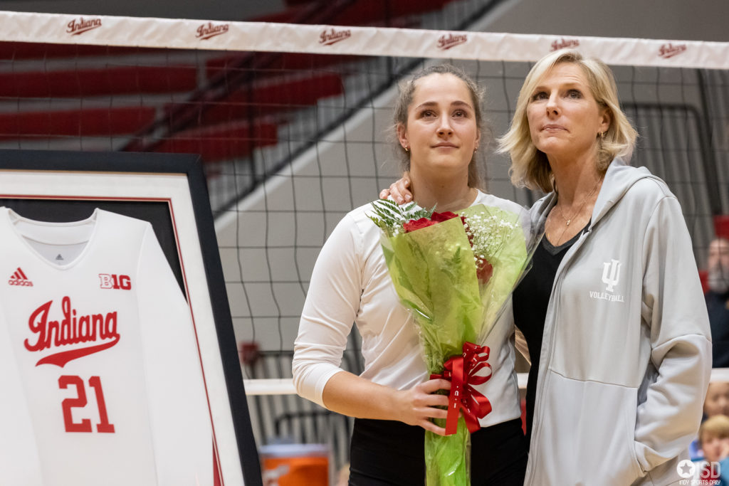 Indiana Volleyball falls to Maryland on Senior Night in Five Sets Big Ten Indiana Hoosiers Indiana Hoosiers by Tony Vasquez - November 26, 20220 Bloomington, Indiana The Indiana volleyball team fell to the Maryland Terrapins in five sets on Senior night at Wilkinson Hall. Indiana was up 2-1 after three, but Maryland took the final two sets 25-21, 10-25, 20-25, 25-20, 15-8. Indiana ended their 2022 season with a 16-16 record with nine wins in the Big Ten to finish in eighth place in the conference. Camry Haworth had another standout performance, recording yet another double-double with 42 assists and 18 digs, five blocks, three aces, and two kills. Senior Paula Cerama also had a double-double in her final match. After the heartbreak loss, the Hoosiers honored their four seniors, Haley Armstrong, Ashley Zulauf, Paula Cerame, and Emily Fitzner. Photo Gallery -Tony Vasquez Indiana University Volleyball vs Maryland on November 25, 2022. Photo by Tony Vasquez for Indy Sports Daily. Indiana University Volleyball vs Maryland on November 25, 2022. Photo by Tony Vasquez for Indy Sports Daily. Indiana University Volleyball vs Maryland on November 25, 2022. Photo by Tony Vasquez for Indy Sports Daily. Indiana University Volleyball vs Maryland on November 25, 2022. Photo by Tony Vasquez for Indy Sports Daily. Indiana University Volleyball vs Maryland on November 25, 2022. Photo by Tony Vasquez for Indy Sports Daily. Indiana University Volleyball vs Maryland on November 25, 2022. Photo by Tony Vasquez for Indy Sports Daily. Indiana University Volleyball vs Maryland on November 25, 2022. Photo by Tony Vasquez for Indy Sports Daily. Indiana University Volleyball vs Maryland on November 25, 2022. Photo by Tony Vasquez for Indy Sports Daily. Indiana University Volleyball vs Maryland on November 25, 2022. Photo by Tony Vasquez for Indy Sports Daily. Indiana University Volleyball vs Maryland on November 25, 2022. Photo by Tony Vasquez for Indy Sports Daily.