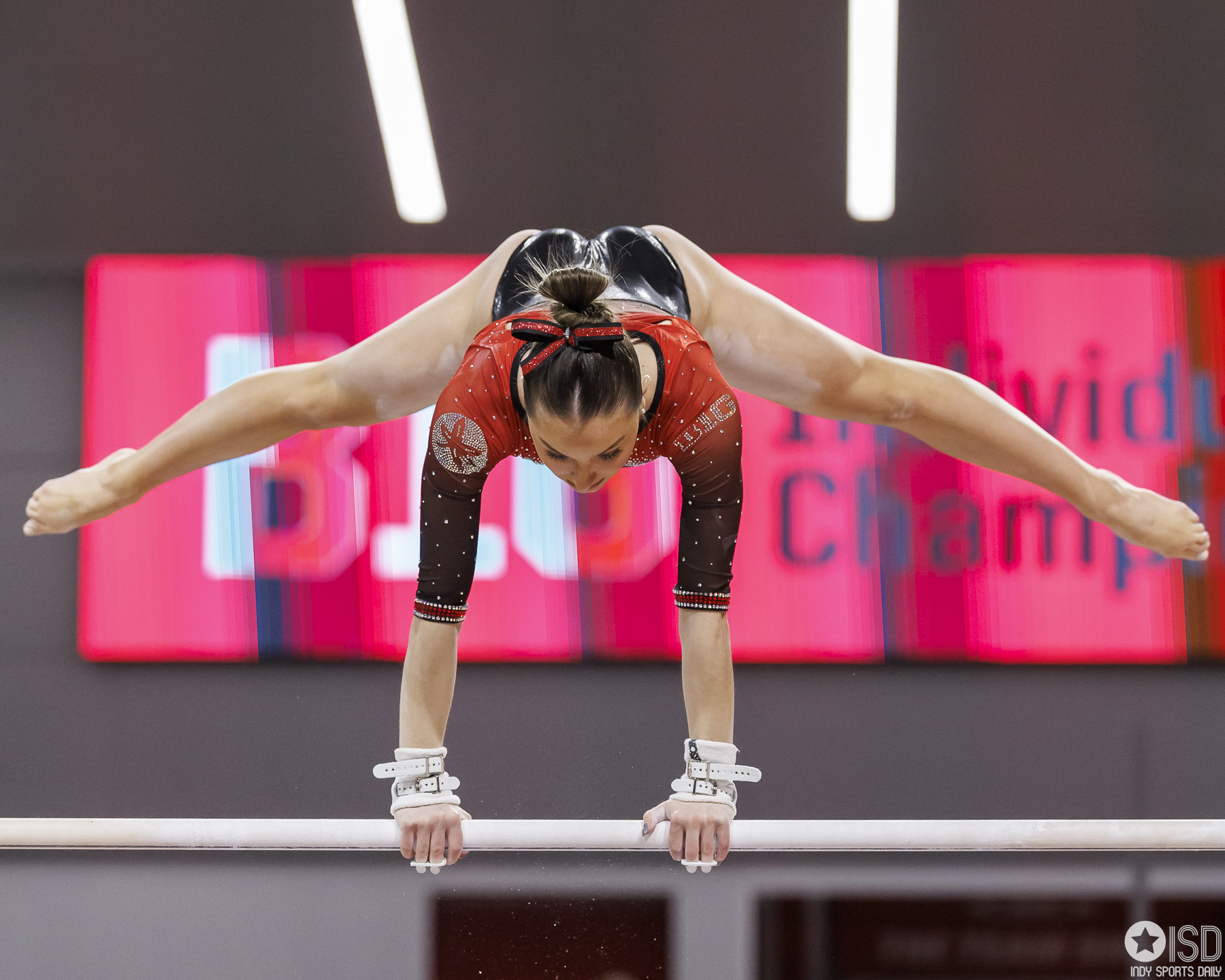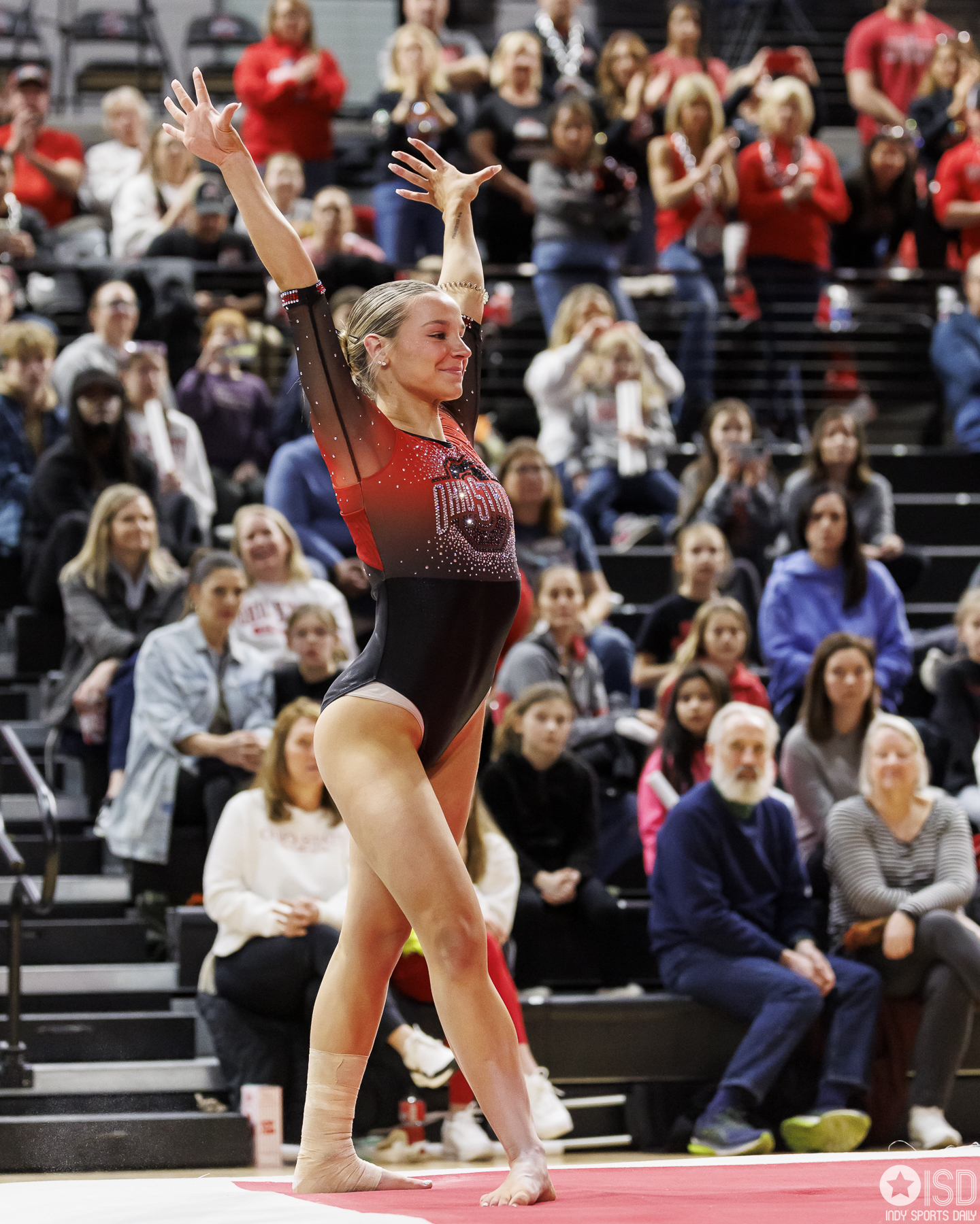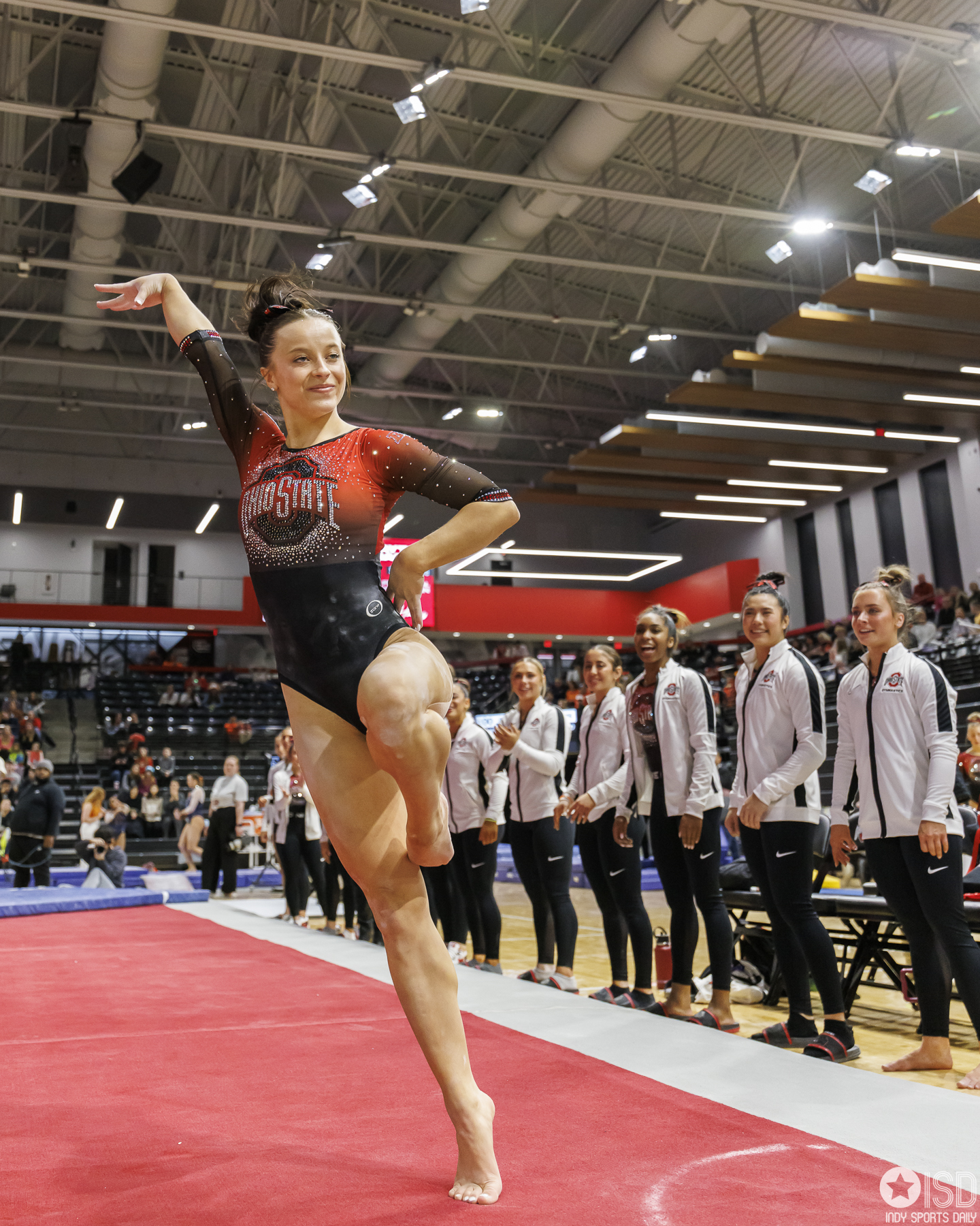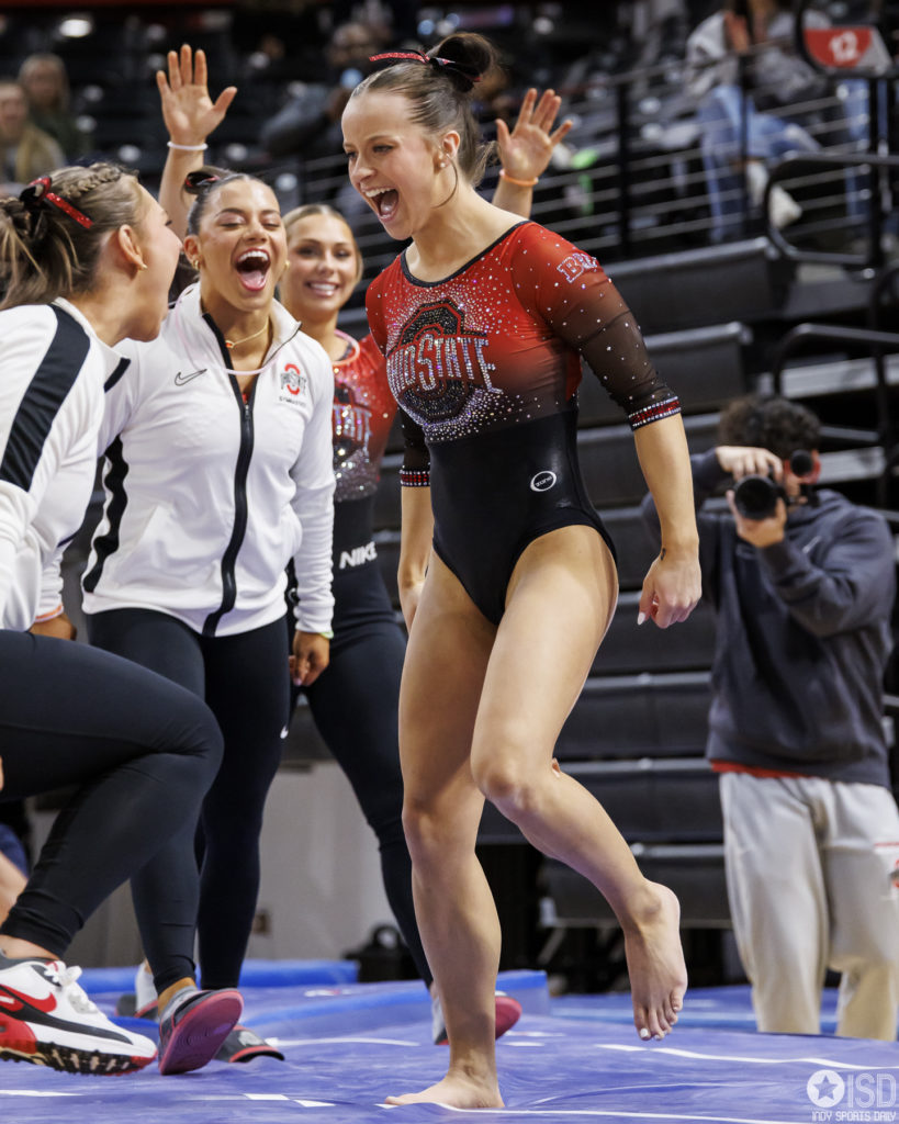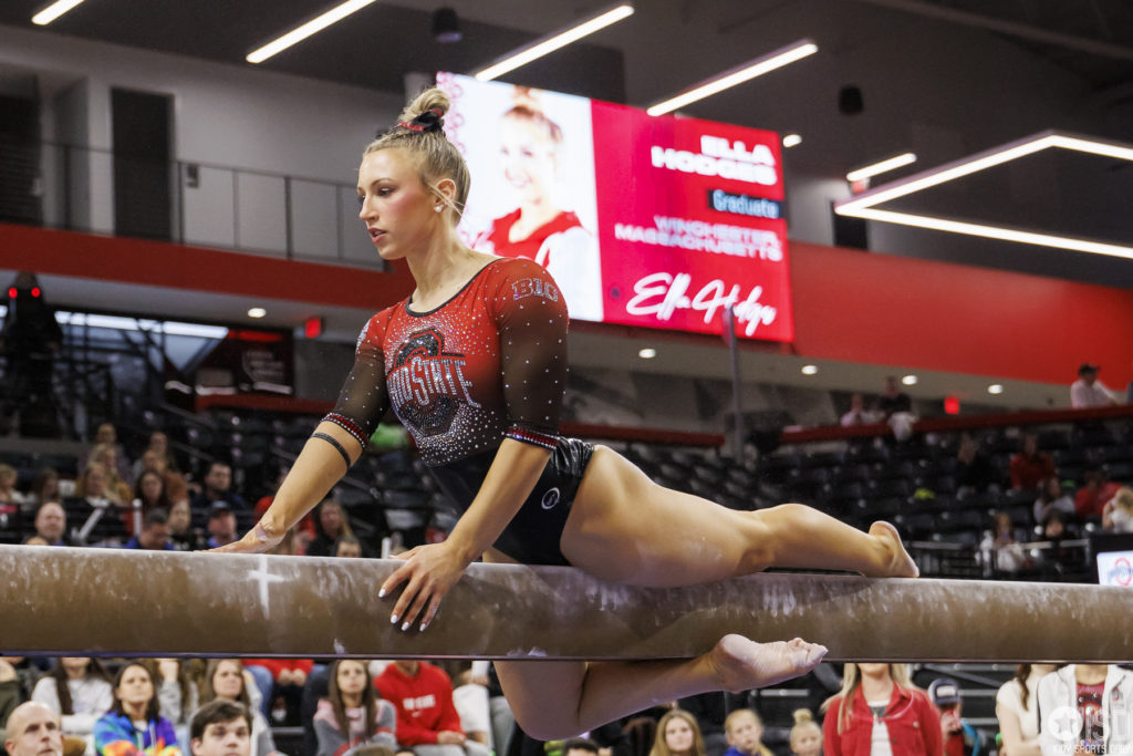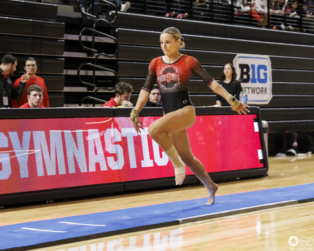 Buckeyes triumph in first Big Ten victory, achieving 197.100 against Illinois Big Ten Big Ten Gymnastics Big Ten News Gymnastics Ohio State Buckeyes by Tony Vasquez - January 30, 20240 Columbus, OH – In a Monday night showdown at the Covelli Center, the No. 12 Ohio State women’s gymnastics team secured its first Big Ten Conference win by outscoring No. 24 Illinois 197.100-196.175. The Buckeyes, standing at 3-2 overall and 1-1 in the B1G, achieved their third consecutive score of 197.00 this year. Launching the team’s success on uneven bars, Emma Pritchard set a new personal best with an impressive score of 9.900. Joining her at the top, Harris matched Pritchard’s excellence with a 9.900. The team continued to shine as Hodges secured her second event title of the meet, closing with a stunning 9.925 on-the-floor exercise. Vetter followed closely with a score of 9.900, securing the second spot overall. Looking ahead, Ohio State gears up for a Big Ten road test as they face Maryland at the XFINITY Center in College Park on Sunday, Feb. 4, at 1 p.m. Photo Gallery Final scores: Ohio State – 197.100 / Illinois – 196.175 OSU vault: Kaitlyn Grimes – 9.775 Sidney Washington – 9.775 Mallory Gregory – 9.875 Nicole Riccardi – 9.875 Payton Harris – 9.875 Tory Vetter – 9.900 OSU bars: Emma Pritchard – 9.900 Sidney Washington – 9.825 Tory Vetter – 9.800 Payton Harris – 9.900 Nicole Riccardi – 9.775 Courtney McCann – 9.750 OSU beam: Emma Pritchard – 9.825 Alexis Hankins – 9.825 Payton Harris – 9.875 Tory Vetter – 9.775 Ella Hodges – 9.925 Courtney McCann – 9.100 OSU floor: Savannah Gonzalez – 9.825 Sidney Washington – 9.850 Kaylyn Mintz – 9.800 Tory Vetter – 9.900 Payton Harris – 9.875 Ella Hodges – 9.925 Photo by Tony Vasquez for Indy Sports Daily. Photo by Tony Vasquez for Indy Sports Daily. Photo by Tony Vasquez for Indy Sports Daily. Photo by Tony Vasquez for Indy Sports Daily. Photo by Tony Vasquez for Indy Sports Daily. Photo by Tony Vasquez for Indy Sports Daily. Photo by Tony Vasquez for Indy Sports Daily. Photo by Tony Vasquez for Indy Sports Daily. Photo by Tony Vasquez for Indy Sports Daily. Photo by Tony Vasquez for Indy Sports Daily. Photo by Tony Vasquez for Indy Sports Daily. Photo by Tony Vasquez for Indy Sports Daily. Photo by Tony Vasquez for Indy Sports Daily. Photo by Tony Vasquez for Indy Sports Daily. Photo by Tony Vasquez for Indy Sports Daily.