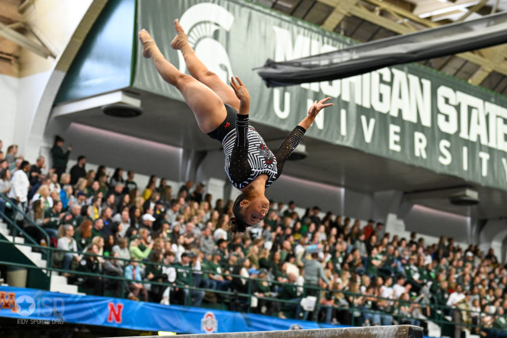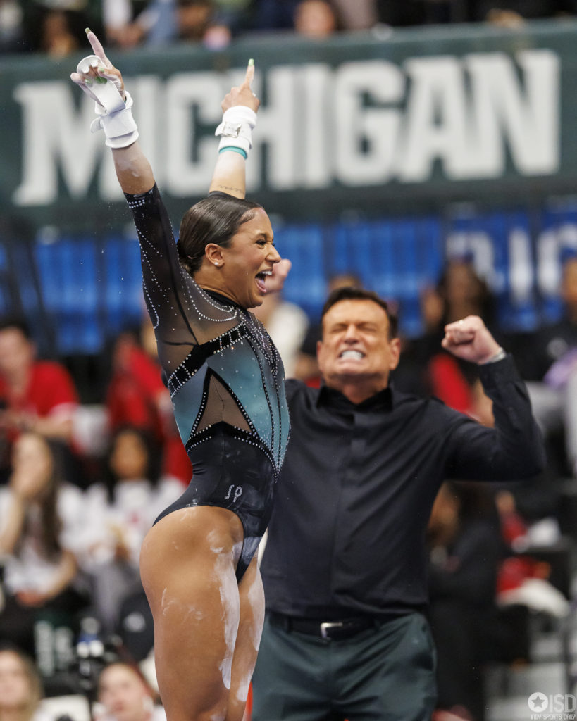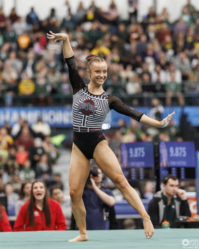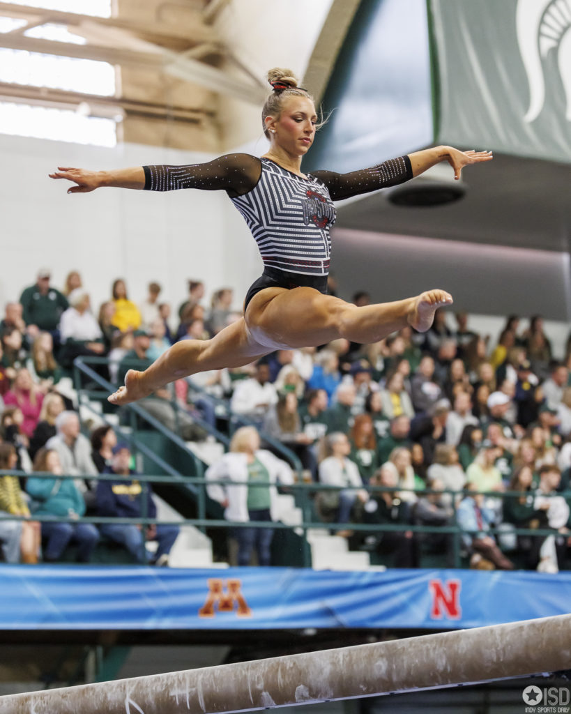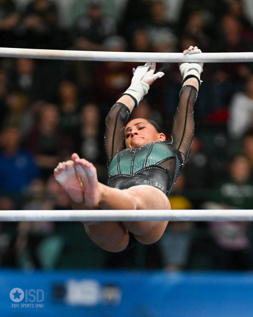 2024 B1G Women’s Gymnastics Championships Big Ten Big Ten Gymnastics Big Ten News Gymnastics by Tony Vasquez - March 25, 2024March 25, 20240 East Lansing, MI—The 42nd Big Ten Women’s Gymnastics Championships took place on Saturday, March 23, at Michigan State’s Jenison Field House in East Lansing, Michigan. The Championship was divided into two sessions: the afternoon session featured Nebraska, Iowa, Illinois, Maryland, Rutgers, and Penn State, while Michigan, Michigan State, Ohio State, and Minnesota competed in the evening. Michigan State clinched the Big Ten women’s gymnastics title with an impressive overall score of 197.600 in front of its home crowd. The victory marked its first conference championship in school history, and the Spartans also claimed the 2024 regular season title. Minnesota took second place with 197.500 points, and Michigan came in third with 197.225 points from the evening session. Ohio State secured fourth place with 197.050 points, while Maryland, Illinois, Nebraska, Penn State, Rutgers, and Iowa rounded out the standings in fifth to tenth place, respectively. Final results of the afternoon sessions: Maryland – 196.775 Illinois – 196.700 Nebraska – 196.250 Penn State – 195.825 Rutgers – 195.400 Iowa – 193.975 Final results of the evening sessions: Michigan State – 197.600 Michigan State – 197.600 Minnesota – 197.500 Ohio State – 197.050 ➡️ B1G Session Gallery: Session 2 gallery B1G Women’s Gymnastics Championships on March 23, 2024. Photo by Tony Vasquez B1G Women’s Gymnastics Championships on March 23, 2024. Photo by Tony Vasquez B1G Women’s Gymnastics Championships on March 23, 2024. Photo by Tony Vasquez B1G Women’s Gymnastics Championships on March 23, 2024. Photo by Tony Vasquez Ohio State’s Courtney McCann on beam. © Chris Shaw / IndySportsDaily B1G Women’s Gymnastics Championships on March 23, 2024. Photo by Tony Vasquez B1G Women’s Gymnastics Championships on March 23, 2024. Photo by Tony Vasquez Michigan’s Carly Bauman on the uneven bars. © Chris Shaw / IndySportsDaily B1G Women’s Gymnastics Championships on March 23, 2024. Photo by Tony Vasquez B1G Women’s Gymnastics Championships on March 23, 2024. Photo by Tony Vasquez Ohio State’s Nicole Riccardi on floor exercise. © Chris Shaw / IndySportsDaily B1G Women’s Gymnastics Championships on March 23, 2024. Photo by Tony Vasquez B1G Women’s Gymnastics Championships on March 23, 2024. Photo by Tony Vasquez Ohio State’s Ella Hodges on floor exercise. © Chris Shaw / IndySportsDaily B1G Women’s Gymnastics Championships on March 23, 2024. Photo by Tony Vasquez Ohio State’s Payton Harris on vault. © Chris Shaw / IndySportsDaily Ohio State’s Tory Vetter on the uneven bars. © Chris Shaw / IndySportsDaily B1G Women’s Gymnastics Championships on March 23, 2024. Photo by Tony Vasquez Michigan State’s Delanie Harkness on the uneven bars. © Chris Shaw / IndySportsDaily B1G Women’s Gymnastics Championships on March 23, 2024. Photo by Tony Vasquez B1G Women’s Gymnastics Championships on March 23, 2024. Photo by Tony Vasquez B1G Women’s Gymnastics Championships on March 23, 2024. Photo by Tony Vasquez B1G Women’s Gymnastics Championships on March 23, 2024. Photo by Tony Vasquez B1G Women’s Gymnastics Championships on March 23, 2024. Photo by Tony Vasquez B1G Women’s Gymnastics Championships on March 23, 2024. Photo by Tony Vasquez Michigan State coach Mike Rowe celebrates after winning the championship. © Chris Shaw / IndySportsDaily B1G Women’s Gymnastics Championships on March 23, 2024. Photo by Tony Vasquez B1G Women’s Gymnastics Championships on March 23, 2024. Photo by Tony Vasquez B1G Women’s Gymnastics Championships on March 23, 2024. Photo by Tony Vasquez B1G Women’s Gymnastics Championships on March 23, 2024. Photo by Tony Vasquez Michigan State celebrates winning the 2024 championship. © Chris Shaw / IndySportsDaily All-Championship Team Sierra Brooks, MICH Gabby Wilson, MICH Carly Bauman, MICH Skyla Schulte, MICH Jenna Mulligan, MICH Mya Hooten, MINN Gianna Gerdes, MINN Sarah Moraw, MINN Lauren Pearl, MINN Katie Horak, MINN Ella Sirjord, MINN Sage Kellerman, MSU Olivia Zsarmani, MSU Nikki Smith, MSU Baleigh Garcia, MSU Elle Beaufait, MSU MaKayla Tucker, MSU Gabrielle Stephen, MSU Csenge Bácskay, NEB Emma Spence, NEB Martina Comin, NEB Sophia McClelland, NEB Arielle Ward, ILL Mia Takekawa, ILL Kadyn Fitzgibbon, ILL Mia Townes, ILL Payton Harris, OSU Nicole Riccardi, OSU Tory Vetter, OSU Ella Hodges, OSU Savannah Gonzalez, OSU Alexa Rothenbuescher, MD Rhea LeBlanc, MD Madeline Komoroski, MD Bailey Libby, IOWA Gabrielle Dildy, RUT Amani Herring, PSU Isabella Salcedo, PSU