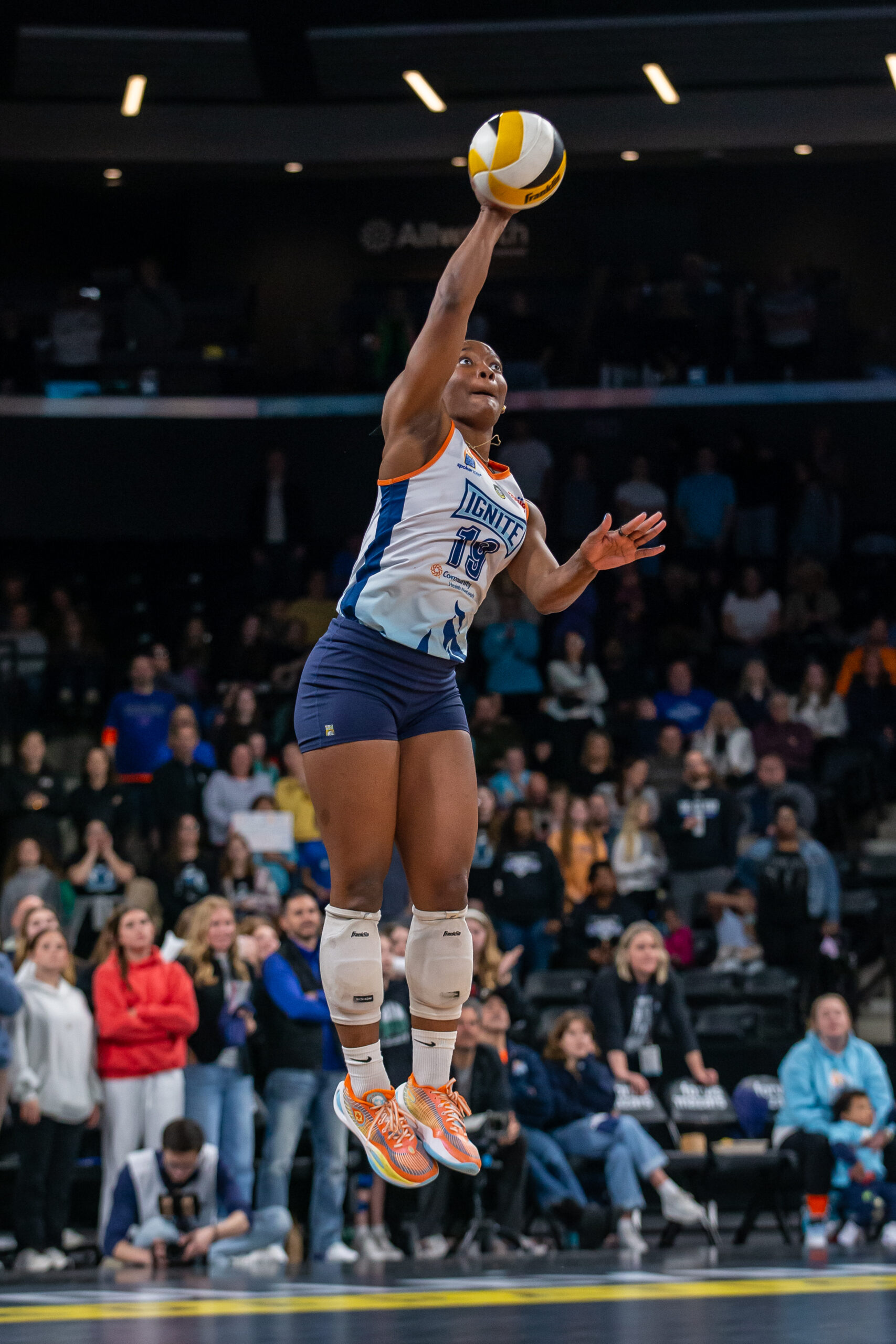 Ignite lose a tough match to Las Vegas in five Indy Ignite by Joshua Herd - April 18, 2025April 20, 20250 Fishers, IND – The Indy Ignite fought hard all night but came up short versus the Las Vegas Thrill on Thursday night in five sets. The Ignite won the first set with ease 25-16 with five players scoring at least two points. Vegas settled down and dominated for most of the rest of the night. The Ignite dug themselves into a hole in the rest of the sets having to come from behind in all of them. They fought hard and won the fourth 31-29. In the last set they were running on fumes and could not catch the spark to pull off the win losing the final set 15-12. Ainise Havili scored her first double-double of the season with 20 assists and 10 digs. Indy will play Grand Rapids on Saturday afternoon in and important match. The Ignite are in fourth place with a 12-11 record. ➡️ Ignite v Thrill photo gallery