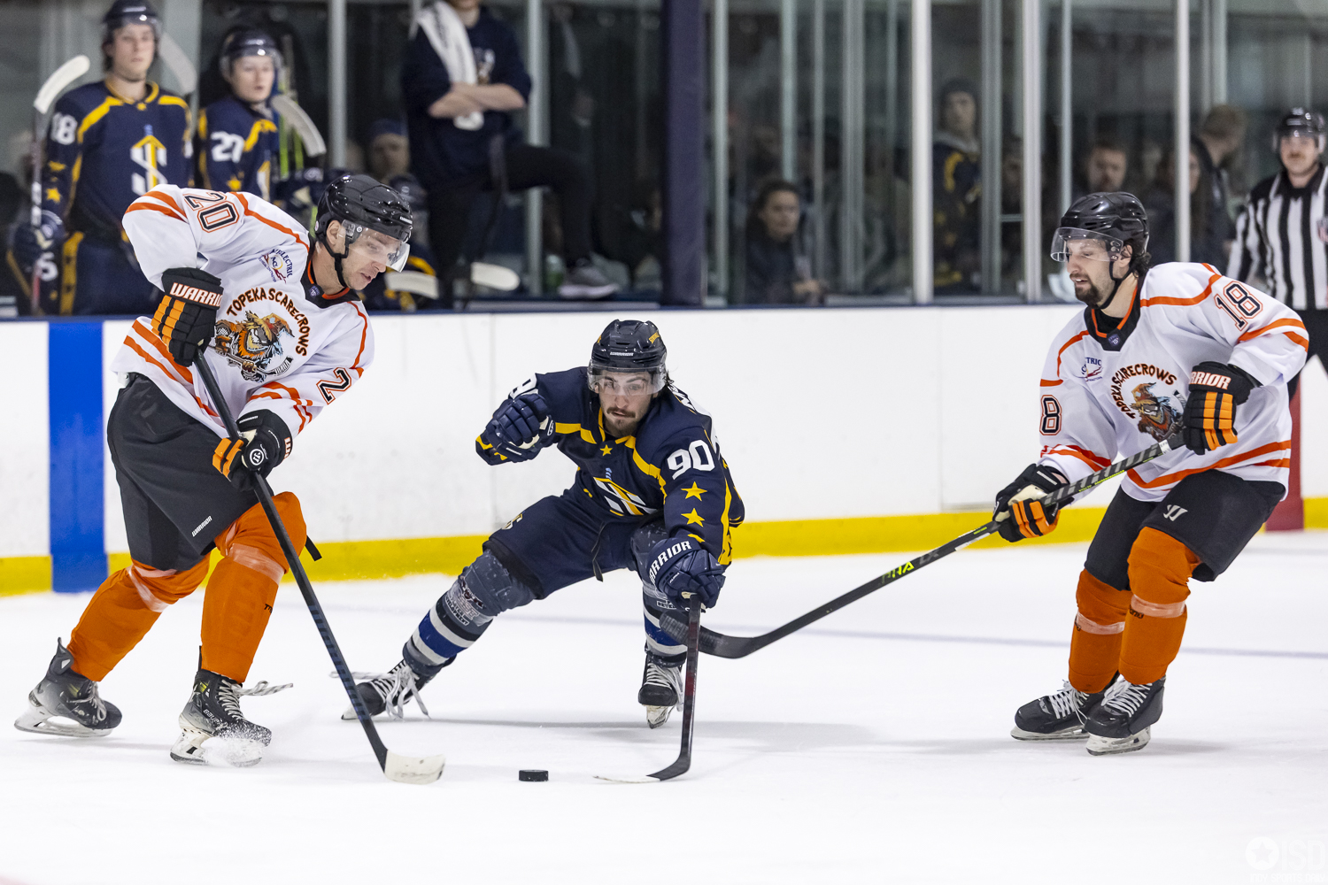 Columbus Welcomes Pro Hockey with Electric Atmosphere Despite 6–1 Loss Hockey Indiana Sentinels by Tony Vasquez - October 11, 2025October 11, 20250 The opening night of professional hockey in Columbus was a spectacle both on and off the ice Friday night, as a packed crowd filled the Hamilton Community Center and Ice Arena for the Indiana Sentinels’ inaugural season. While the scoreboard favored the visiting Topeka Scarecrows in a 6–1 decision, the atmosphere inside the arena was electric. More than 1,000 fans filled the stands and lined the rink, eager to witness history as the Columbus hosted its first Federal Prospects Hockey League game. The crowd’s energy remained high throughout the night. Cheering the big hits, roaring during scuffles, and rallying behind their new hometown team despite the unfavorable outcome. Despite the loss, professional hockey has made a memorable entrance into Columbus. From the standing-room-only crowd to the palpable excitement surrounding the team, professional hockey has made a memorable entrance into Columbus. The Sentinels will look to bounce back quickly, as they face the Scarecrows again Saturday at 7:30 p.m. Indiana Sentinels Photo Gallery The Indiana Sentinels lost their home opening hockey game to the Topeka Scarecrows 6-1 at the Hamilton Center and Ice Arena in Columbus, Ind., Friday, Oct. 10, 2025. (Photo by Tony Vasquez for ISD) The Indiana Sentinels lost their home opening hockey game to the Topeka Scarecrows 6-1 at the Hamilton Center and Ice Arena in Columbus, Ind., Friday, Oct. 10, 2025. (Photo by Tony Vasquez for ISD) The Indiana Sentinels lost their home opening hockey game to the Topeka Scarecrows 6-1 at the Hamilton Center and Ice Arena in Columbus, Ind., Friday, Oct. 10, 2025. (Photo by Tony Vasquez for ISD) The Indiana Sentinels lost their home opening hockey game to the Topeka Scarecrows 6-1 at the Hamilton Center and Ice Arena in Columbus, Ind., Friday, Oct. 10, 2025. (Photo by Tony Vasquez for ISD) The Indiana Sentinels lost their home opening hockey game to the Topeka Scarecrows 6-1 at the Hamilton Center and Ice Arena in Columbus, Ind., Friday, Oct. 10, 2025. (Photo by Tony Vasquez for ISD) The Indiana Sentinels lost their home opening hockey game to the Topeka Scarecrows 6-1 at the Hamilton Center and Ice Arena in Columbus, Ind., Friday, Oct. 10, 2025. (Photo by Tony Vasquez for ISD) The Indiana Sentinels lost their home opening hockey game to the Topeka Scarecrows 6-1 at the Hamilton Center and Ice Arena in Columbus, Ind., Friday, Oct. 10, 2025. (Photo by Tony Vasquez for ISD) The Indiana Sentinels lost their home opening hockey game to the Topeka Scarecrows 6-1 at the Hamilton Center and Ice Arena in Columbus, Ind., Friday, Oct. 10, 2025. (Photo by Tony Vasquez for ISD) The Indiana Sentinels lost their home opening hockey game to the Topeka Scarecrows 6-1 at the Hamilton Center and Ice Arena in Columbus, Ind., Friday, Oct. 10, 2025. (Photo by Tony Vasquez for ISD) The Indiana Sentinels lost their home opening hockey game to the Topeka Scarecrows 6-1 at the Hamilton Center and Ice Arena in Columbus, Ind., Friday, Oct. 10, 2025. (Photo by Tony Vasquez for ISD) The Indiana Sentinels lost their home opening hockey game to the Topeka Scarecrows 6-1 at the Hamilton Center and Ice Arena in Columbus, Ind., Friday, Oct. 10, 2025. (Photo by Tony Vasquez for ISD)