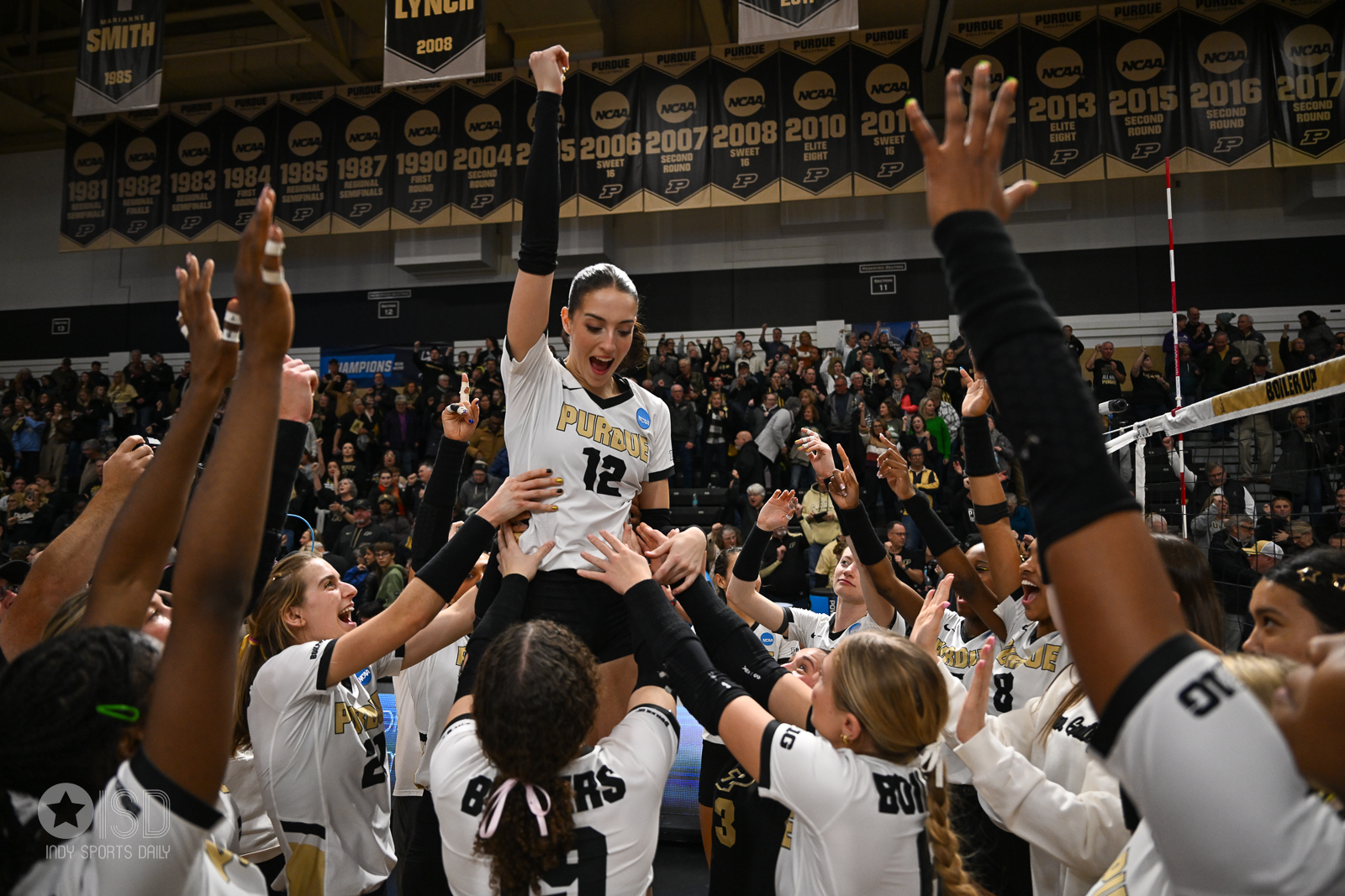 Boilers Sweep Past Raiders: #3 Purdue Dominates Wright State in NCAA First Round Purdue Boilermakers Purdue volleyball Volleyball by Chris Shaw - December 5, 20250 West Lafayette – The No. 3 seed Purdue Boilermakers opened their 2025 NCAA Volleyball Championship campaign with a decisive victory, sweeping the Wright State Raiders 3-0 (25-13, 25-21, 25-19) on Thursday, December 4, at Holloway Gymnasium. The victory, the 21st consecutive NCAA First Round win for head coach Dave Shondell, propels the Boilermakers into the Round of 32 where they will face No. 6 seed Baylor. Purdue’s dominant performance was anchored by an exceptionally efficient offense and stellar individual efforts, demonstrating why they were one of the tournament’s top seeds. ➡️ https://indysportsdaily.smugmug.com/Purdue-Volleyball-1/2025-season/2025-NCAA-VB-Championship-Rd-1-Purdue-v-Wright-State-Dec-4 Purdue set the tone immediately in the first set, showcasing an offensive performance that was nearly flawless. The team hit an astonishing .567 attack percentage—nearly a season-high—while holding the Raiders to just 13 points, the third-lowest total allowed to an opponent all season. The sheer difference in attacking efficiency proved too much for Wright State, who struggled to contain the Boilermakers’ powerful hitting. This early dominance provided Purdue with the momentum and confidence needed to cruise through the remainder of the match. The cornerstone of Purdue’s offensive success was outside hitter Akasha Anderson, who delivered a historic individual performance. Anderson recorded a team-high 16 kills on 29 attacks, remarkably committing zero hitting errors for a blazing .552 attack clip. This marked the first errorless performance with at least 16 attacks by a Purdue player this century. Her ability to terminate rallies consistently from the pin was a major factor in neutralizing any potential resistance from the Raiders. Beyond Anderson, the entire Purdue squad contributed heavily to the sweep. Kenna Wollard, an AVCA National Player of the Year Semifinalist, posted her eighth double-double of the season with 13 kills and 10 digs, proving her value on both offense and defense. Setter Taylor Anderson orchestrated the efficient attack, dishing out 39 assists while contributing seven digs and two kills. Even the defense shined, with opposite Grace Heaney leading the team in digs for much of the night, finishing with nine digs, alongside six kills and a pair of block assists. While the first set was a rout, Wright State showed considerable resilience in the second and third frames, making the score tighter than the final result suggests. In the second set, the Raiders managed to score 21 points, their best performance of the night, before falling 25-21. They continued to battle in the third set, staying competitive until Purdue pulled away late for the 25-19 win. Outside hitters Mya Ayro (11 kills) and Reilly Zegunis (10 kills) were the statistical leaders for the Raiders, but their collective .212 hitting percentage was ultimately overwhelmed by Purdue’s firepower. The emphatic 3-0 win improves Purdue’s record to 25-6 and sends them to the second round of the tournament. The team’s strong performance, particularly their offensive efficiency, signals they are peaking at the right time. The Boilermakers now prepare for a tough matchup against the No. 6 seed Baylor Bears on Friday, December 5th, with a trip to the Regional Semifinals on the line.