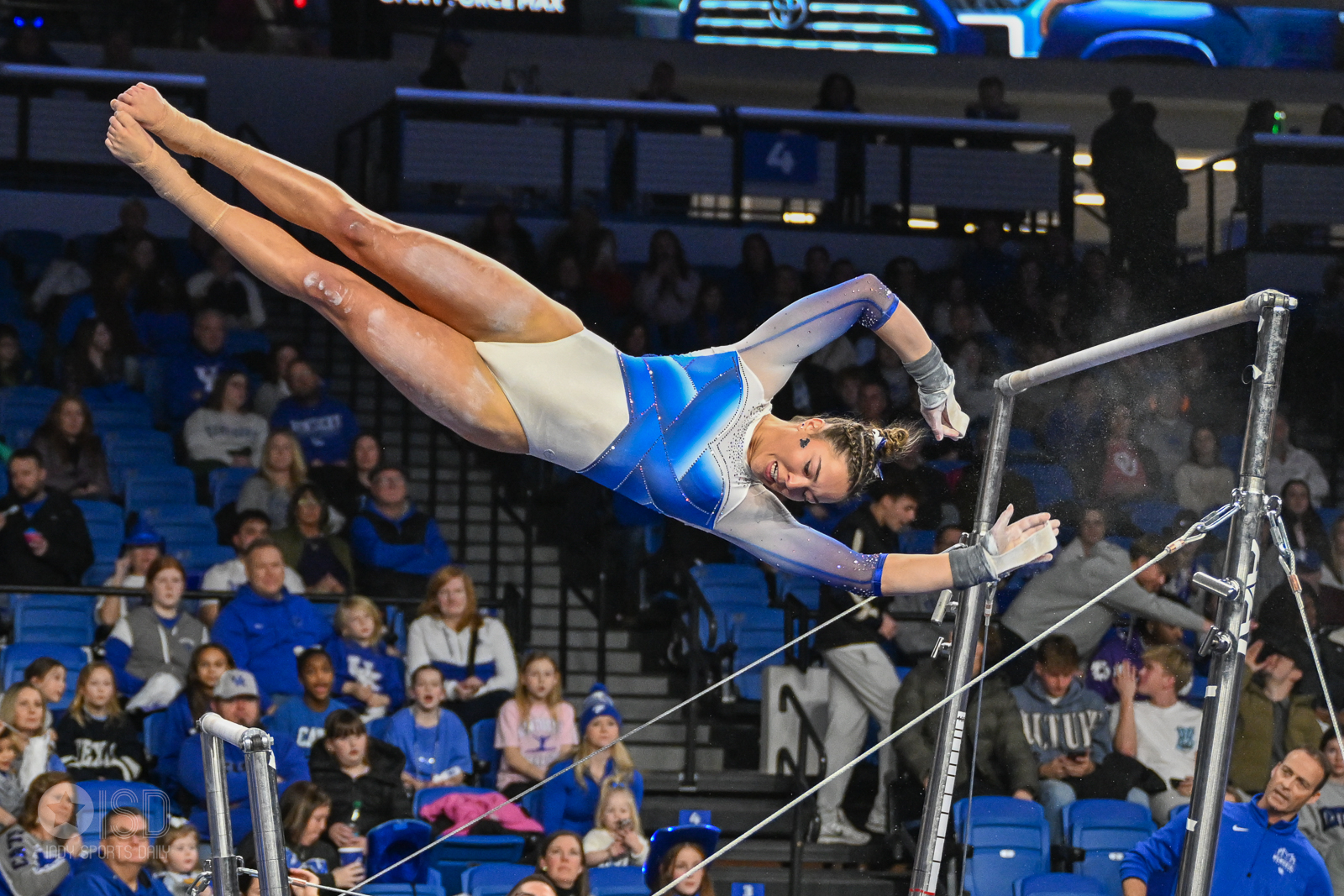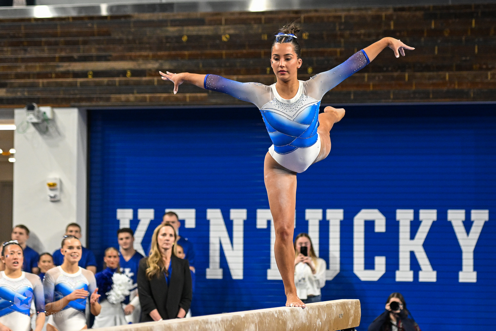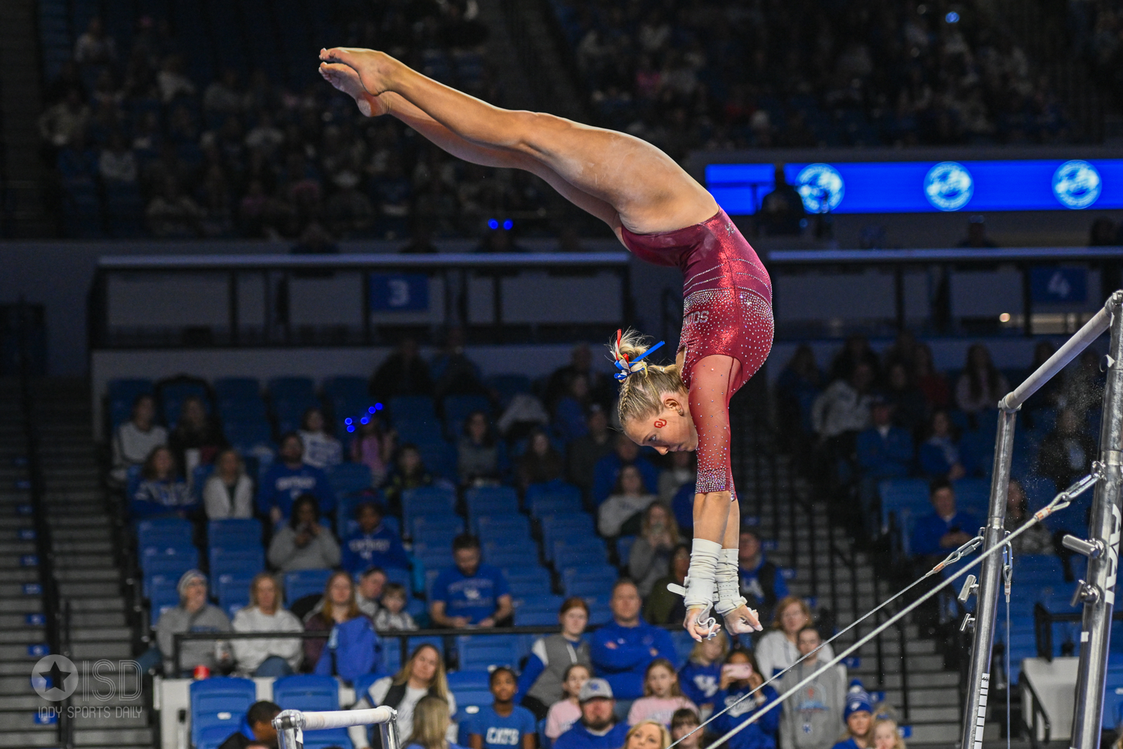 The meet began with Kentucky taking an early, if narrow, lead after the first rotation. The Wildcats’ vault squad was led by a spectacular stuck Yurchenko 1.5 from Delaynee Rodriguez, who earned a 9.925. Oklahoma, meanwhile, struggled with uncharacteristic consistency on the uneven bars; a major error in the leadoff spot from Hannah Scheible forced the Sooners to count several scores in the mid-9.7 range, though Addison Fatta saved the rotation with a stuck double layout for a 9.900.