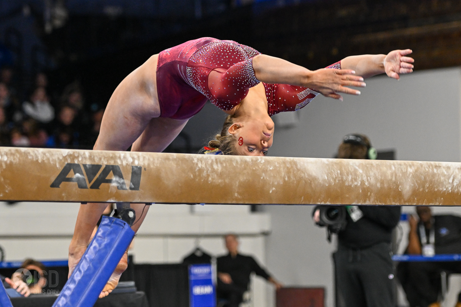 Oklahoma found its rhythm in the second rotation, putting up a massive 49.550 on vault to reclaim the lead. The Sooners’ depth was on full display as Hannah Scheible redeemed her bars performance with a stuck front handspring pike half for a 9.950, a score matched by teammate Keira Wells. Kentucky remained steady on the uneven bars with a season-best 49.025, anchored by another stuck landing from Rodriguez, but the Sooners’ vaulting power created a half-point cushion by the midway mark.