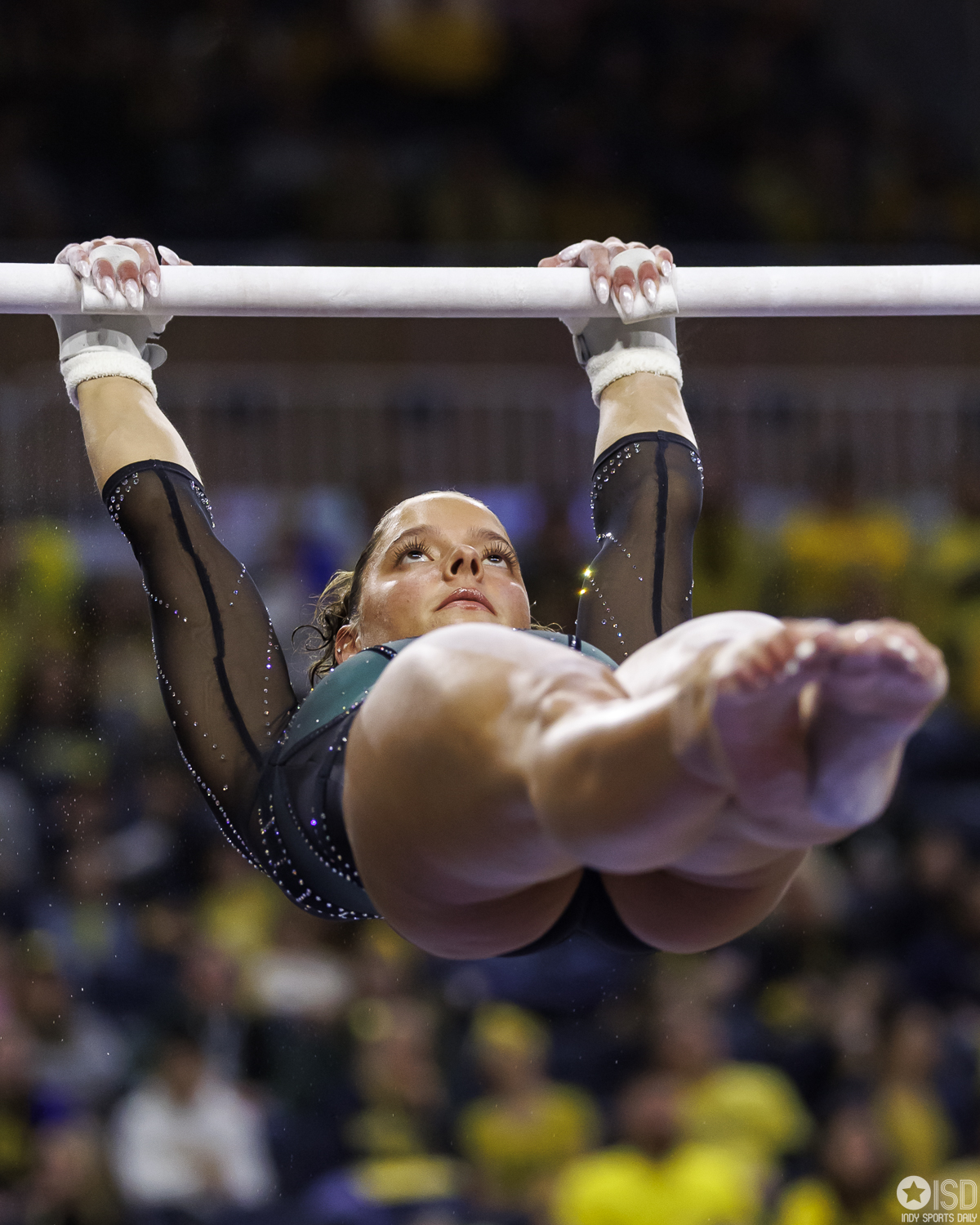 Michigan State continued to match that intensity on vault, posting a 49.425. Sage Kellerman soared to a 9.975, which was the highest vault score of the afternoon. While Olivia Zsarmani added a 9.925. The amplitude and control gave the Spartans the slight edge they would need by day’s end.