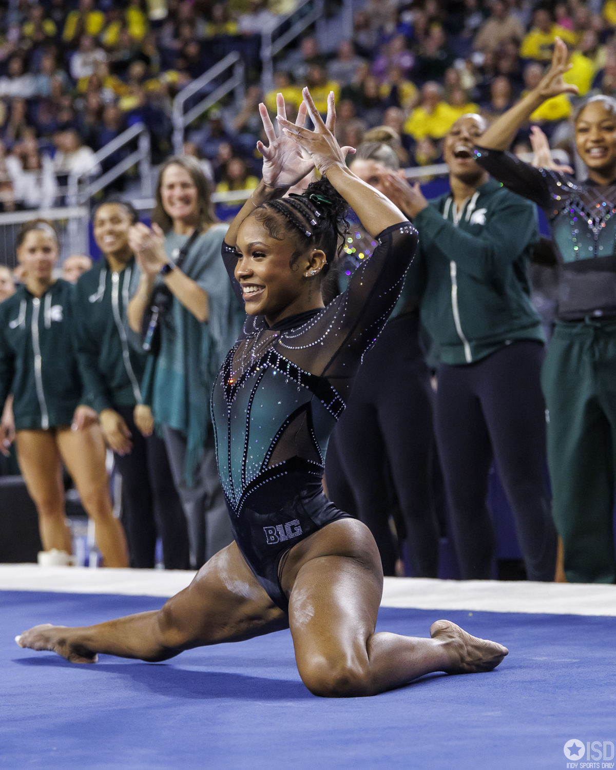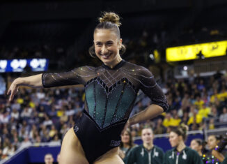 Home > Gymnastics > Big Ten Gymnastics > Spartans edge Wolverines by a tenth in Crisler Center Thriller
