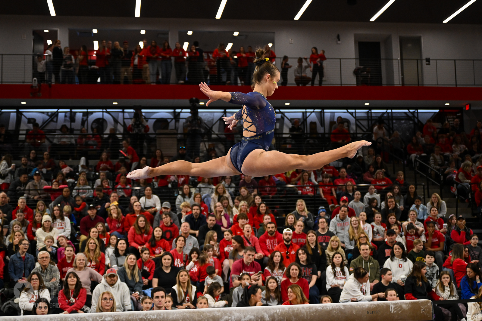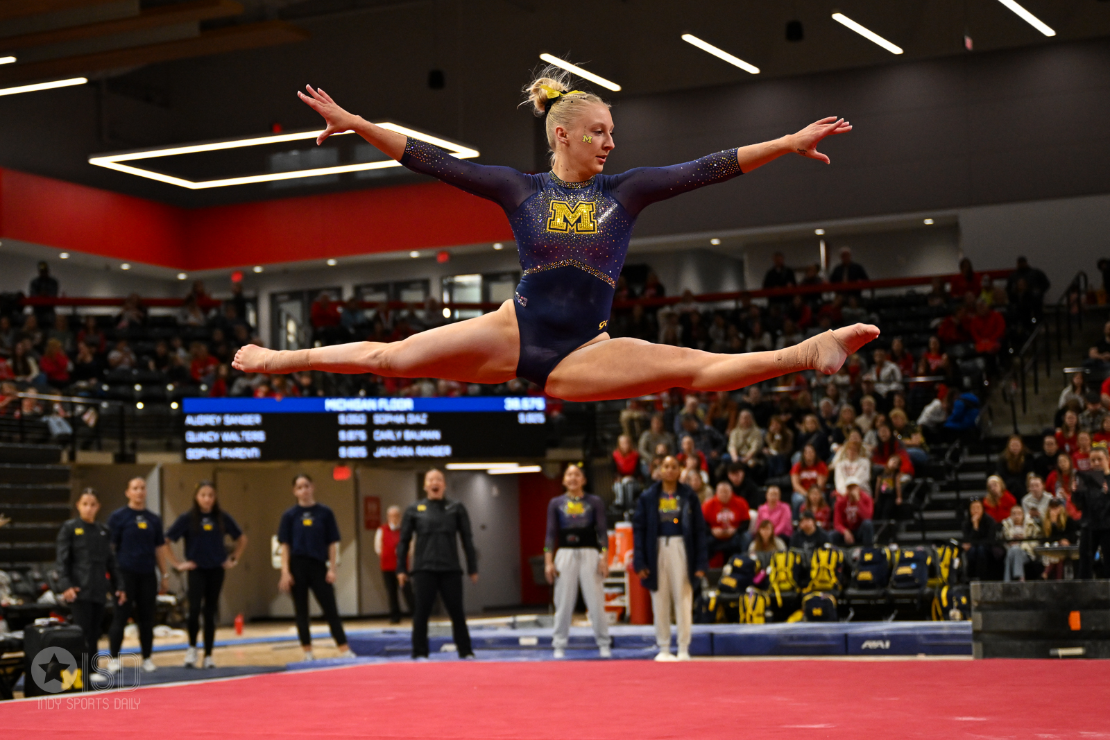 “Beam Team” Surge Propels No. 8 Michigan Past No. 19 Ohio State in Columbus Big Ten Gymnastics Gymnastics by Chris Shaw - February 11, 20260 Columbus, OH – The No. 8-ranked University of Michigan women’s gymnastics team used a historic performance on the balance beam to secure a hard-fought 197.375–197.075 victory over No. 19 Ohio State on Saturday, February 7, 2026. Competing at the Covelli Center, the Wolverines overcame an early deficit to hand the Buckeyes a narrow defeat in front of their home crowd. Despite the loss, Ohio State celebrated a significant milestone, posting their first team score above 197.000 since the 2024 season. ➡️ Ohio State vs Michigan photos The meet was largely defined by Michigan’s clinical precision in the final rotation. Entering the beam as their last event, the Wolverines recorded a 49.600, which stands as the third-highest beam score in program history. This late-meet surge was led by graduate student Carly Bauman and sophomore Kayli Boozer, who both posted stellar 9.950s to share the event title. For Boozer, it marked her fifth consecutive beam title, further cementing her status as one of the premier specialists in the nation. Ohio State did not make the victory easy, holding a slight lead after the first rotation and outperforming Michigan on the floor exercise with a season-high 49.375. Buckeye standout Tory Vetter was the star of the afternoon for the home team, capturing the all-around title with a season-best score of 39.525. Vetter’s consistency was on full display as she also earned shares of the individual event titles on both the uneven bars and floor exercise, each with a score of 9.900. The competition for individual honors was a back-and-forth affair throughout the evening. Michigan’s Sophia Diaz and Ohio State’s JJ Coleman shared the vault title with matching 9.900s, while Michigan’s Sophie Parenti reached a career milestone by clinching the uneven bars title with a personal-best 9.900. While the Buckeyes showed depth and improvement across the board, Michigan’s ability to remain steady under pressure during the final moments allowed them to pull ahead. With this win, Michigan improves their season record to 5–2 (2–2 in Big Ten play) and looks toward a high-stakes road meet against No. 5 UCLA. Ohio State, now 3–2 (3–1 Big Ten), remains at home to host Washington next weekend. The Buckeyes will look to build on the momentum of their season-high team score as they continue their climb in the national rankings. OSU took on Michigan on Saturday at the Covelli Center, with Michigan coming out on top 197.375 to 197.025. © 2026 Chris Shaw / IndySportsDaily OSU took on Michigan on Saturday at the Covelli Center, with Michigan coming out on top 197.375 to 197.025. © 2026 Chris Shaw / IndySportsDaily OSU took on Michigan on Saturday at the Covelli Center, with Michigan coming out on top 197.375 to 197.025. © 2026 Chris Shaw / IndySportsDaily OSU took on Michigan on Saturday at the Covelli Center, with Michigan coming out on top 197.375 to 197.025. © 2026 Chris Shaw / IndySportsDaily OSU took on Michigan on Saturday at the Covelli Center, with Michigan coming out on top 197.375 to 197.025. © 2026 Chris Shaw / IndySportsDaily OSU took on Michigan on Saturday at the Covelli Center, with Michigan coming out on top 197.375 to 197.025. © 2026 Chris Shaw / IndySportsDaily OSU took on Michigan on Saturday at the Covelli Center, with Michigan coming out on top 197.375 to 197.025. © 2026 Chris Shaw / IndySportsDaily OSU took on Michigan on Saturday at the Covelli Center, with Michigan coming out on top 197.375 to 197.025. © 2026 Chris Shaw / IndySportsDaily