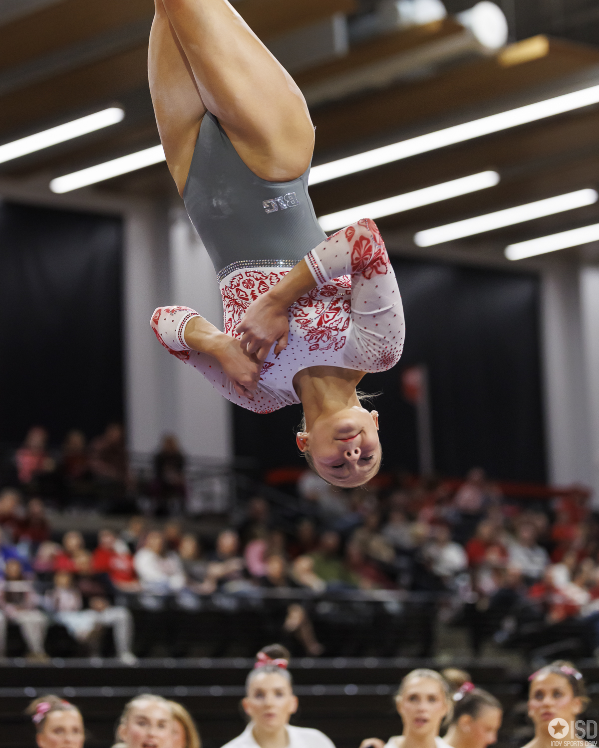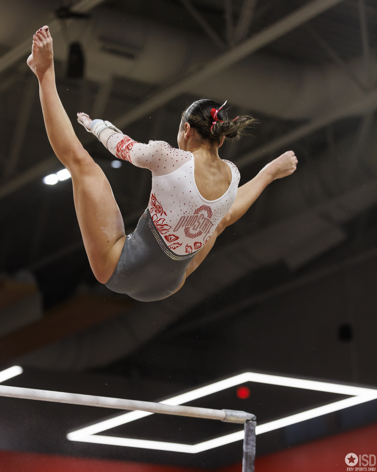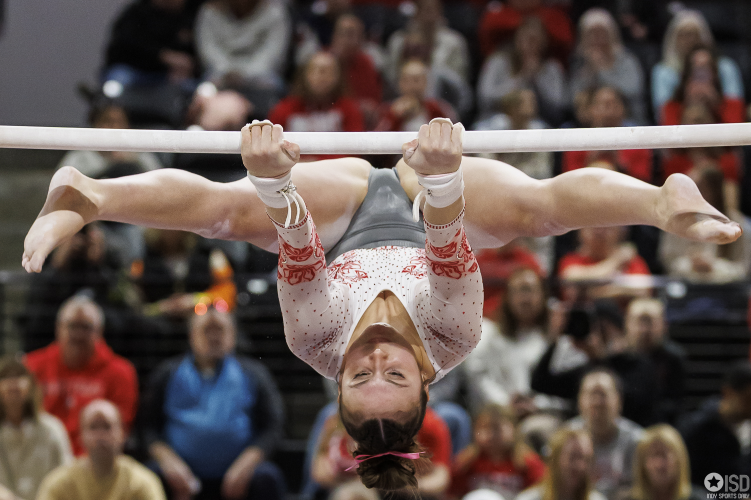 Ohio State falls to Washington 196.475–196.300 on Saturday, February 14, 2026, at the Covelli Center in Columbus. Photo by Tony Vasquez for Indy Sports Daily