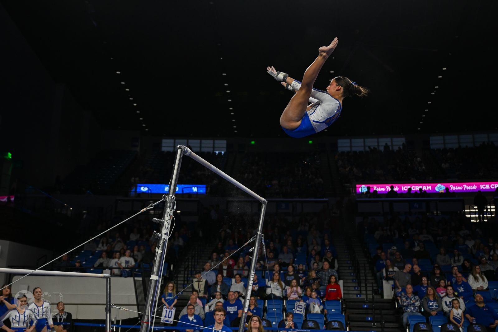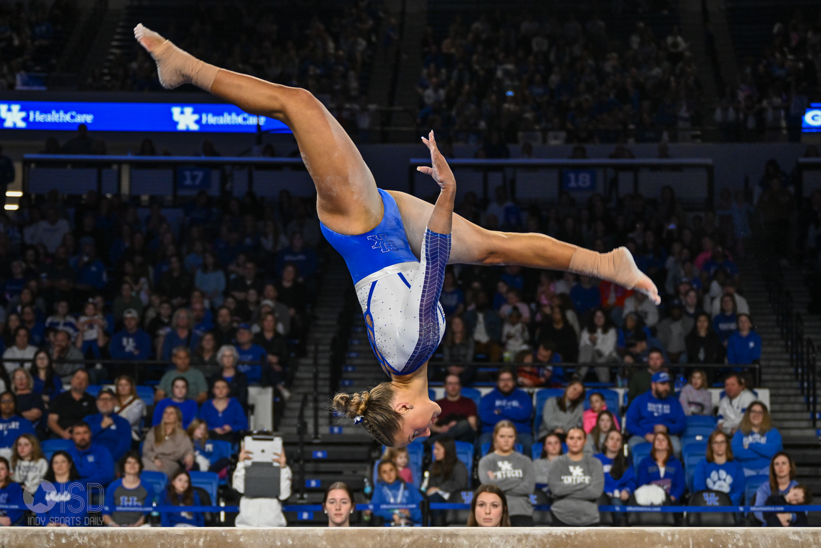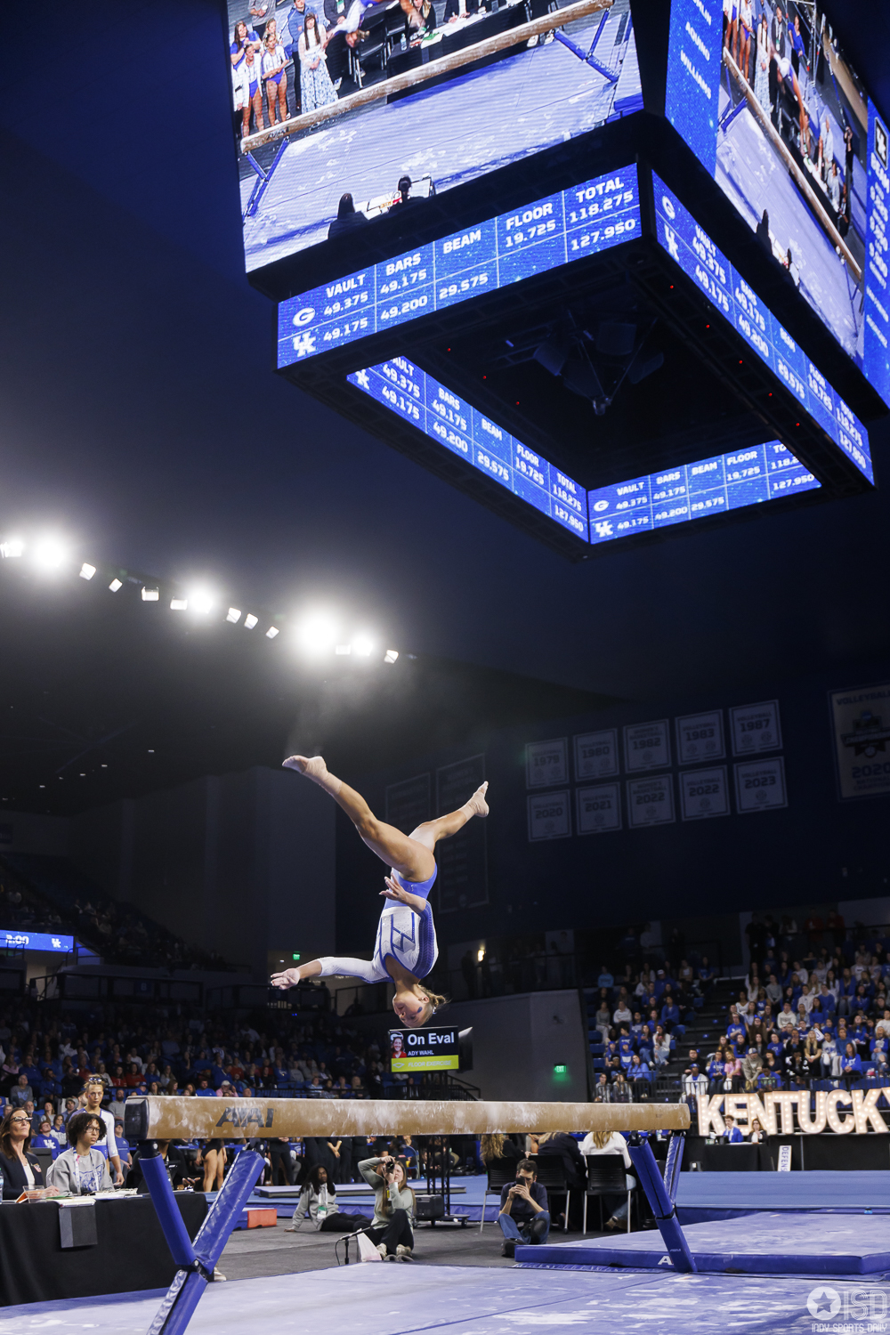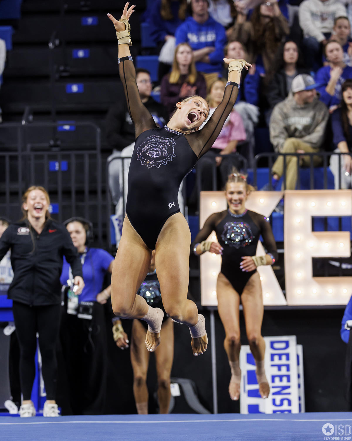 GymDogs Gritty Road Performance Edges Wildcats in Lexington Thriller Gymnastics SEC Gymnastics by Chris Shaw - March 2, 2026March 5, 20260 Lexington, KY – The No. 6 Georgia gymnastics team secured a hard-fought victory on the road Friday night, defeating No. 23 Kentucky with a final score of 197.275 to 197.025. Competing at Historic Memorial Coliseum, the GymDogs notched their highest SEC road score of the season, marking a significant milestone in the first year under co-head coaches Cécile Canqueteau-Landi and Ryan Roberts. Despite the loss, Kentucky celebrated a season-best home performance, breaking the 197-point barrier in front of an energetic Lexington crowd. ➡️ Kentucky vs Georgia photos Georgia’s victory was built on a foundation of consistency and a standout performance from their freshman class. All five freshmen saw action, with Kelise Woolford providing a major highlight by winning the beam title outright with a stellar 9.950. Autumn Reingold also made her mark, earning a share of the uneven bars title with a 9.875. The veteran presence of senior Ja’Free Scott proved vital as well; she tied her career high with a 9.900 to share the vault title before anchoring the beam rotation with another 9.900 to clinch the meet. Kentucky didn’t make the win easy, outscoring the GymDogs on both the uneven bars and the balance beam. Junior Cecily Rizo was the standout for the Wildcats, capturing the first all-around title of her career with a personal-best score of 39.350. Rizo’s night was highlighted by a stuck Yurchenko full on vault that earned her a 9.900, tying for the event title. The Wildcats also saw strong contributions from Gabby Van Frayen and Delaynee Rodriguez, who shared the bars title, and Creslyn Brose, who anchored the floor exercise with a 9.925 to take the event win. The floor rotation was a seesaw battle where both teams showcased high-level difficulty and showmanship. Georgia’s Ady Wahl and freshman CaMarah Williams both posted 9.925s to lead the GymDogs, while senior Nicole King made a successful season debut on the event with a 9.875. Kentucky’s floor squad kept the pressure on until the final routine, but a small out-of-bounds error earlier in the rotation prevented them from overtaking the Bulldogs in the overall standings. Ultimately, Georgia’s depth on vault, where they didn’t count a score below 9.850, provided the narrow margin of victory. The win moves Georgia to a 10-3 overall record as they prepare to return home to face No. 7 Missouri next week. Kentucky (1-8-1) will look to carry the momentum of their highest home score of the year into their final road meet of the regular season against No. 3 Alabama in Tuscaloosa. Georgia gymnastics defeated Kentucky with a final score of 197.275 to 197.025 in Lexington, Kentucky on February 27, 2026. Photo by Tony Vasquez for Indy Sports Daily. The No. 6 Georgia gymnastics team secured a hard-fought victory on the road Friday night, defeating No. 23 Kentucky with a final score of 197.275 to 197.025. © Chris Shaw / IndySportsDaily Georgia gymnastics defeated Kentucky with a final score of 197.275 to 197.025 in Lexington, Kentucky on February 27, 2026. Photo by Tony Vasquez for Indy Sports Daily. The No. 6 Georgia gymnastics team secured a hard-fought victory on the road Friday night, defeating No. 23 Kentucky with a final score of 197.275 to 197.025. © Chris Shaw / IndySportsDaily Georgia gymnastics defeated Kentucky with a final score of 197.275 to 197.025 in Lexington, Kentucky on February 27, 2026. Photo by Tony Vasquez for Indy Sports Daily. Georgia gymnastics defeated Kentucky with a final score of 197.275 to 197.025 in Lexington, Kentucky on February 27, 2026. Photo by Tony Vasquez for Indy Sports Daily. Georgia gymnastics defeated Kentucky with a final score of 197.275 to 197.025 in Lexington, Kentucky on February 27, 2026. Photo by Tony Vasquez for Indy Sports Daily. The No. 6 Georgia gymnastics team secured a hard-fought victory on the road Friday night, defeating No. 23 Kentucky with a final score of 197.275 to 197.025. © Chris Shaw / IndySportsDaily Georgia gymnastics defeated Kentucky with a final score of 197.275 to 197.025 in Lexington, Kentucky on February 27, 2026. Photo by Tony Vasquez for Indy Sports Daily. The No. 6 Georgia gymnastics team secured a hard-fought victory on the road Friday night, defeating No. 23 Kentucky with a final score of 197.275 to 197.025. © Chris Shaw / IndySportsDaily Georgia gymnastics defeated Kentucky with a final score of 197.275 to 197.025 in Lexington, Kentucky on February 27, 2026. Photo by Tony Vasquez for Indy Sports Daily. The No. 6 Georgia gymnastics team secured a hard-fought victory on the road Friday night, defeating No. 23 Kentucky with a final score of 197.275 to 197.025. © Chris Shaw / IndySportsDaily Georgia gymnastics defeated Kentucky with a final score of 197.275 to 197.025 in Lexington, Kentucky on February 27, 2026. Photo by Tony Vasquez for Indy Sports Daily. Georgia gymnastics defeated Kentucky with a final score of 197.275 to 197.025 in Lexington, Kentucky on February 27, 2026. Photo by Tony Vasquez for Indy Sports Daily. Georgia gymnastics defeated Kentucky with a final score of 197.275 to 197.025 in Lexington, Kentucky on February 27, 2026. Photo by Tony Vasquez for Indy Sports Daily.