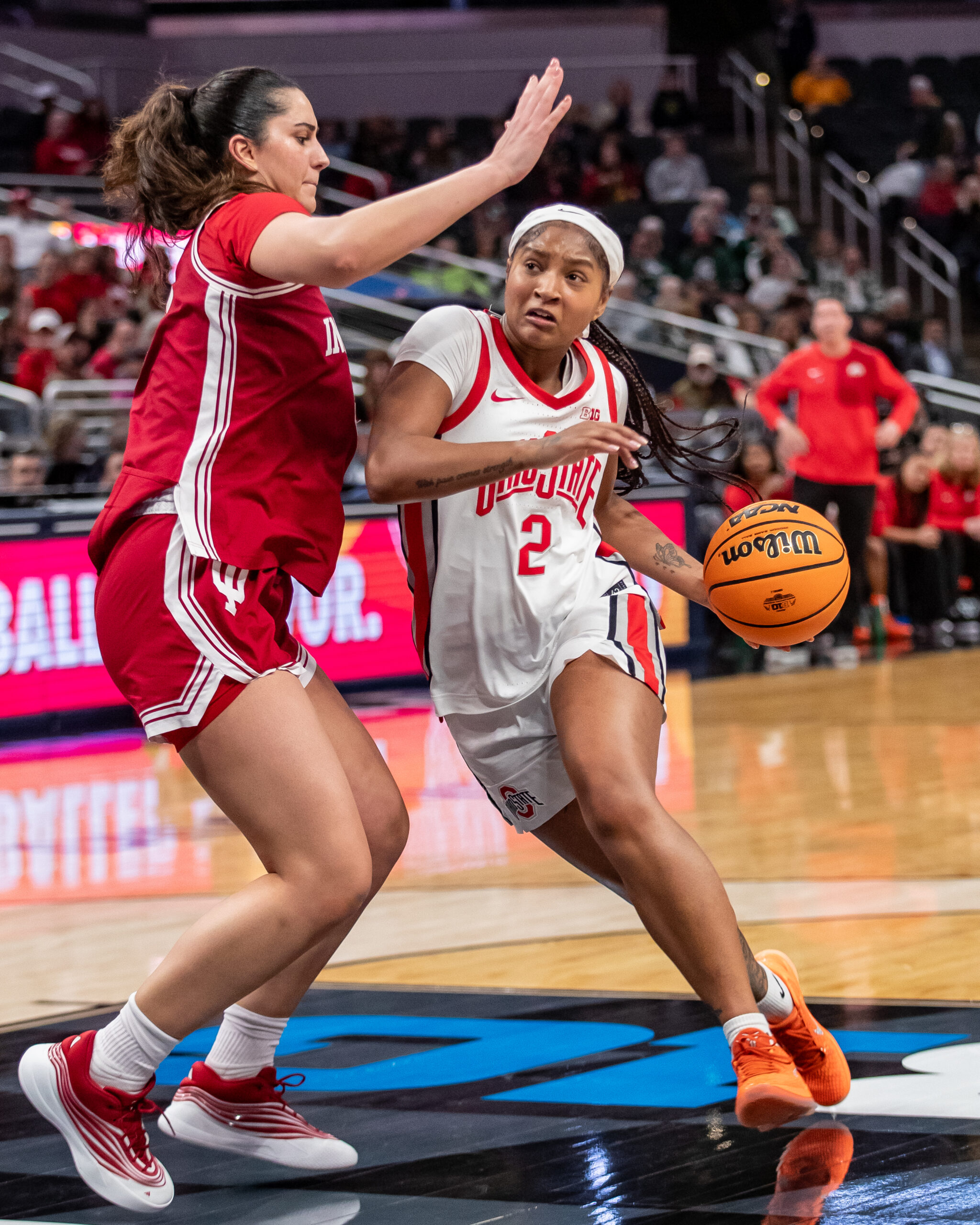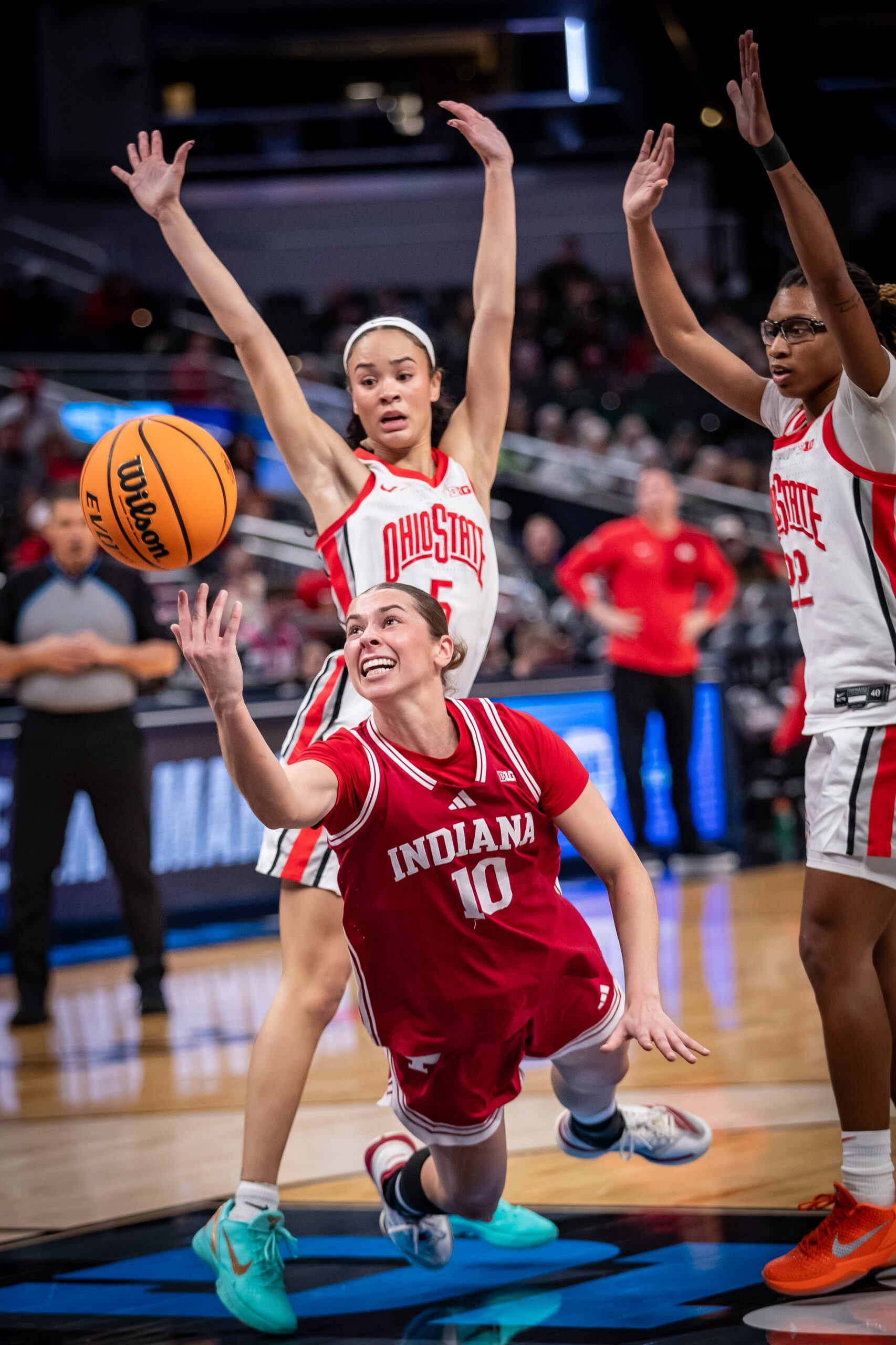 Indiana Send Home by Ohio State Basketball Big Ten Big Ten News College Basketball Hoosier Women's Game Recaps Indiana Hoosiers Indiana Hoosiers Ohio State Buckeyes by Jodi Herd - March 5, 2026March 8, 20260 Indiana returned to the court this afternoon for a round‑two matchup against No. 5 Ohio State in the Women’s Big Ten Tournament. IU opened the game with a strong offensive movement, breaking through Ohio State’s defensive pressure while holding firm on their own end. Despite Indiana’s early balance, Ohio State continued to find openings—whether through quick scoring opportunities or timely steals—to stay within reach. Both teams battled to gain separation, and by the end of the first quarter the game remained deadlocked at 12–12. Ohio State began to shift the momentum in the second quarter. Their defense tightened, creating turnovers and limiting Indiana’s clean looks at the basket. As the Buckeyes’ offense found its rhythm, the lead gradually widened, sending Ohio State into halftime ahead 36–24. The second half opened with both teams pushing hard, each fighting to keep their tournament hopes alive. Indiana leaned into a more defensive approach, but Ohio State’s steady offensive execution made it difficult to slow down their pace. By the start of the fourth quarter, the Buckeyes had stretched their lead to 21 points and continued to control the tempo. Indiana mounted efforts to respond, but Ohio State maintained its composure through the final minutes. Jaloni Cambridge led the Buckeyes with 19 points, helping secure a decisive 83–59 victory and a spot in the next round.