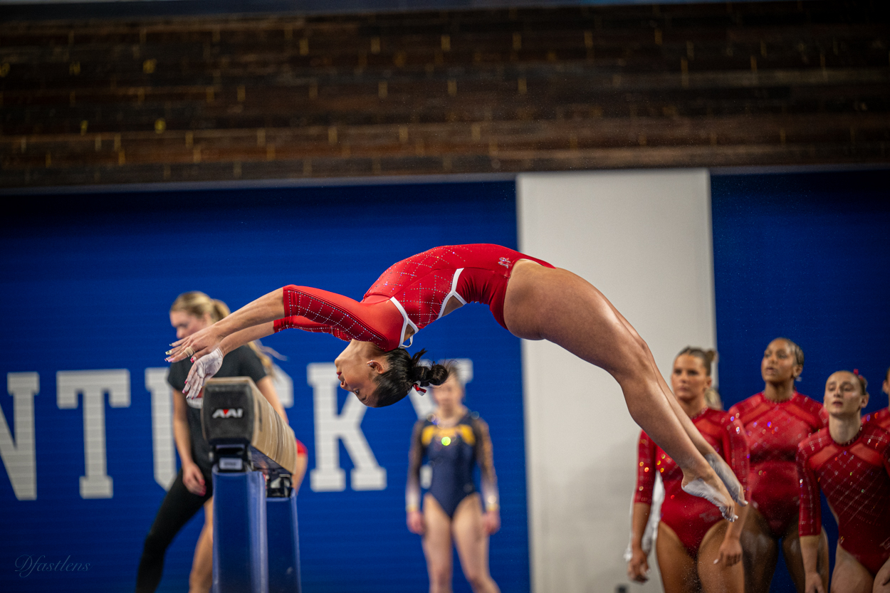 Oklahoma and Arkansas Advance from Lexington Regional Showdown Big Ten Gymnastics Gymnastics SEC Gymnastics by Tony Vasquez - April 13, 2026April 16, 20260 Under the bright lights of Historic Memorial Coliseum, the 2026 NCAA Women’s Gymnastics Lexington Regional unfolded as a high-stakes postseason showcase. The precision, poise, and power defined every routine. The competition brought together some of the nation’s top programs and standout individual qualifiers. With all the teams chasing a coveted spot at nationals. From the opening rotation to the final dismount, the energy inside the arena reflected the intensity of the postseason, where every tenth mattered. The competition opened with a strong showing from Rutgers, who advanced out of the First Round with a 196.200, defeating Central Michigan (195.700) to move into the semifinal field. Friday’s semifinal sessions set the tone for an elite regional final. In Session I, No. 9 Arkansas R (197.175) and No. 8 Missouri (196.875) advanced, outpacing Maryland and NC State. Session II saw No. 1 Oklahoma post a commanding 197.875 to lead the field, followed by Ohio State (196.550). Rutgers (196.300) and host Kentucky (196.175) delivered competitive performances but failed to advance. Sunday’s regional final belonged to Oklahoma, as the Sooners delivered a top score of 198.350 to claim the regional title. Arkansas followed with a 197.450 to secure the second automatic qualifying spot to nationals. Missouri (197.225) and Ohio State (196.700) rounded out a tightly contested final. The NCAA regional format once again emphasized both team depth and individual excellence, with teams competing nationwide alongside individual qualifiers aiming for limited national championship berths. From each region, the top two teams, along with select all-around competitors and event specialists not on advancing teams, earn automatic qualification. With their performances in the Lexington regional Oklahoma and Arkansas advance to the 2026 NCAA Women’s Gymnastics Championships, set for April 16 and 18 at Dickies Arena, where the nation’s best will compete for the title. NCAA Lexington Regional Opening Round NCAA Lexington Regional Semifinals Session I NCAA Lexington Regional Semifinals Session II NCAA Lexington Regional Finals The Rutgers Scarlet Knights defeat Central Michigan 196.200 to 195.700 in round one of the regionals at the Historic Memorial Coliseum in Lexington, Kentucky on April 2, 2026. Photo by Tony Vasquez for Indy Sports Daily The Rutgers Scarlet Knights defeat Central Michigan 196.200 to 195.700 in round one of the regionals at the Historic Memorial Coliseum in Lexington, Kentucky on April 2, 2026. Photo by Tony Vasquez for Indy Sports Daily The Rutgers Scarlet Knights defeat Central Michigan 196.200 to 195.700 in round one of the regionals at the Historic Memorial Coliseum in Lexington, Kentucky on April 2, 2026. Photo by Tony Vasquez for Indy Sports Daily NCAA NC Women’s Gymnastics Championships Lexington Regional with Arkansas, Missouri, NC State, and Maryland at the Historic Memorial Coliseum in Lexington, Kentuclky on April 3 2026. Photo by Tony Vasquez for ISD Photo by Dan Sanchez Photo by Dan Sanchez Photo by Dan Sanchez Photo by Dan Sanchez NCAA NC Women’s Gymnastics Championships Lexington Regional with Arkansas, Missouri, NC State, and Maryland at the Historic Memorial Coliseum in Lexington, Kentuclky on April 3 2026. Photo by Tony Vasquez for ISD NCAA NC Women’s Gymnastics Championships Lexington Regional with Arkansas, Missouri, NC State, and Maryland at the Historic Memorial Coliseum in Lexington, Kentuclky on April 3 2026. Photo by Tony Vasquez for ISD NCAA NC Women’s Gymnastics Championships Lexington Regional with Arkansas, Missouri, NC State, and Maryland at the Historic Memorial Coliseum in Lexington, Kentuclky on April 3 2026. Photo by Tony Vasquez for ISD NCAA NC Women’s Gymnastics Championships Lexington Regional with Arkansas, Missouri, NC State, and Maryland at the Historic Memorial Coliseum in Lexington, Kentuclky on April 3 2026. Photo by Tony Vasquez for ISD NCAA NC Women’s Gymnastics Championships Lexington Regional with Arkansas, Missouri, NC State, and Maryland at the Historic Memorial Coliseum in Lexington, Kentuclky on April 3 2026. Photo by Tony Vasquez for ISD NCAA NC Women’s Gymnastics Championships Lexington Regional with Arkansas, Missouri, NC State, and Maryland at the Historic Memorial Coliseum in Lexington, Kentuclky on April 3 2026. Photo by Tony Vasquez for ISD Photo by Dan Sanchez NCAA NC Women’s Gymnastics Championships Lexington Regional Finals with Oklahoma, Ohio State, Missouri, and Arkansas at the Historic Memorial Coliseum in Lexington, Kentucky on April 5., 2026. Photos by Tony Vasquez for ISD NCAA NC Women’s Gymnastics Championships Lexington Regional Finals with Oklahoma, Ohio State, Missouri, and Arkansas at the Historic Memorial Coliseum in Lexington, Kentucky on April 5., 2026. Photos by Tony Vasquez for ISD NCAA NC Women’s Gymnastics Championships Lexington Regional Finals with Oklahoma, Ohio State, Missouri, and Arkansas at the Historic Memorial Coliseum in Lexington, Kentucky on April 5., 2026. Photos by Tony Vasquez for ISD NCAA NC Women’s Gymnastics Championships Lexington Regional Finals with Oklahoma, Ohio State, Missouri, and Arkansas at the Historic Memorial Coliseum in Lexington, Kentucky on April 5., 2026. Photos by Tony Vasquez for ISD NCAA NC Women’s Gymnastics Championships Lexington Regional Finals with Oklahoma, Ohio State, Missouri, and Arkansas at the Historic Memorial Coliseum in Lexington, Kentucky on April 5., 2026. Photos by Tony Vasquez for ISD NCAA NC Women’s Gymnastics Championships Lexington Regional Finals with Oklahoma, Ohio State, Missouri, and Arkansas at the Historic Memorial Coliseum in Lexington, Kentucky on April 5., 2026. Photos by Tony Vasquez for ISD NCAA NC Women’s Gymnastics Championships Lexington Regional Finals w