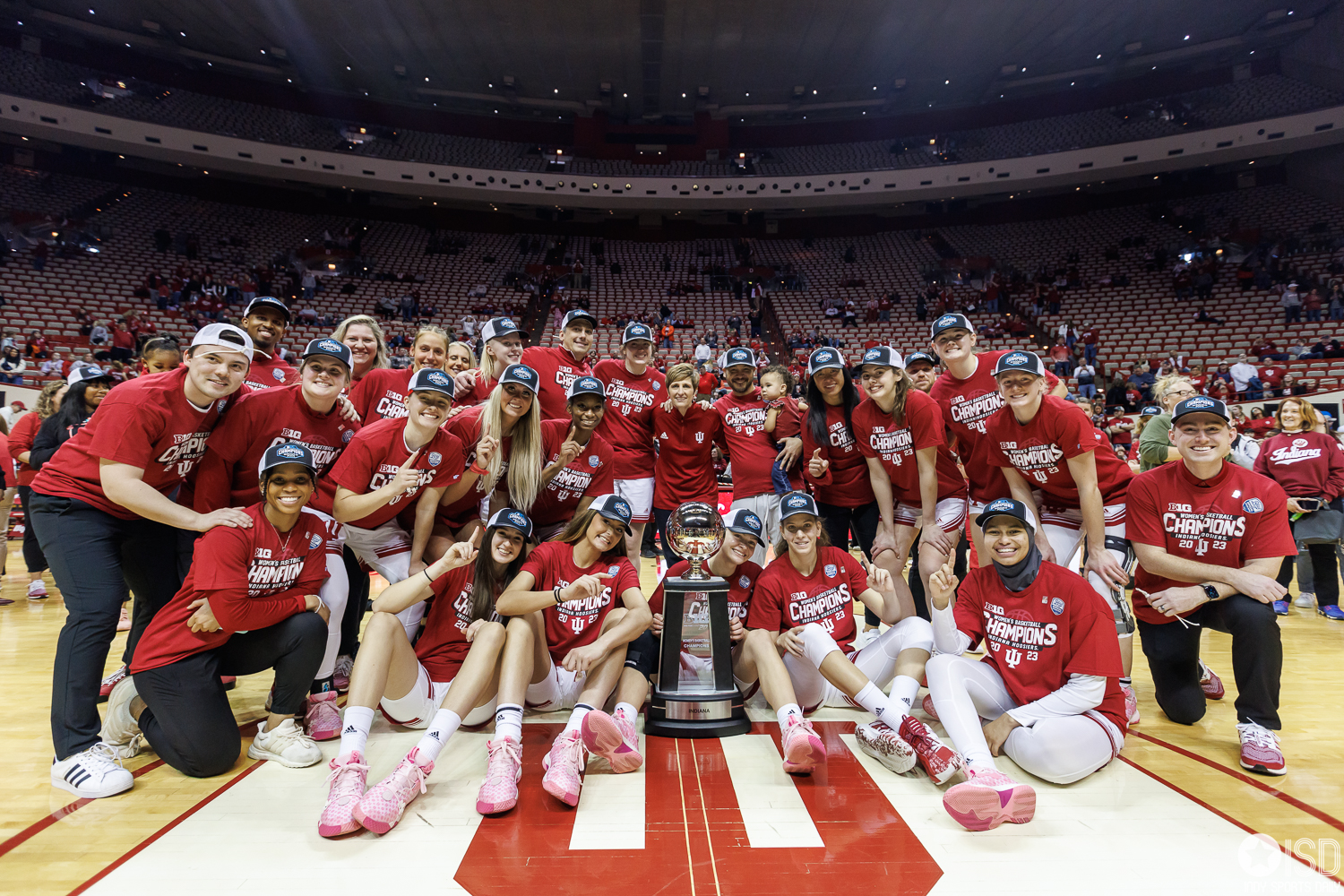 No. 2 Indiana women’s basketball clinches a share of the Big Ten title in front of sell out crowd Big Ten Big Ten News Hoosier Women's Game Recaps Indiana Hoosiers Indiana Hoosiers Indiana Hoosiers by Tony Vasquez - February 19, 2023February 20, 20230 Bloomington, IN No. 2 Indiana takes care of Purdue in front of a sold crowd of 17,222 at Simon Skjdot Assembly hall to clinch a part of the Big Ten title 83 - 60. Mackenzie Holmes led the Hoosiers with 20 points and seven rebounds. All five of Indiana's starters scored